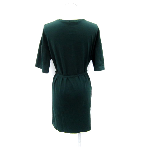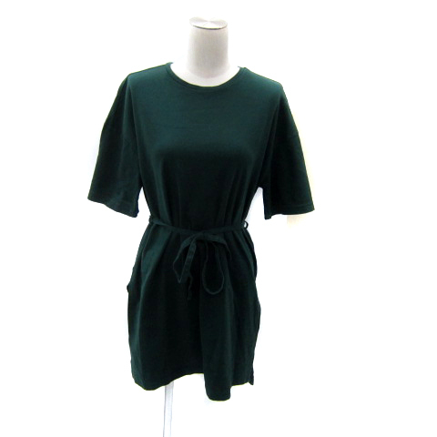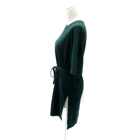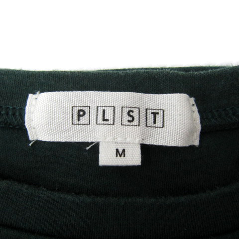 プラステ PLST カットソー ロング丈 五分袖 ラウンドネック 無地 スリット リボン M 緑 グリーン /SY21 レディース