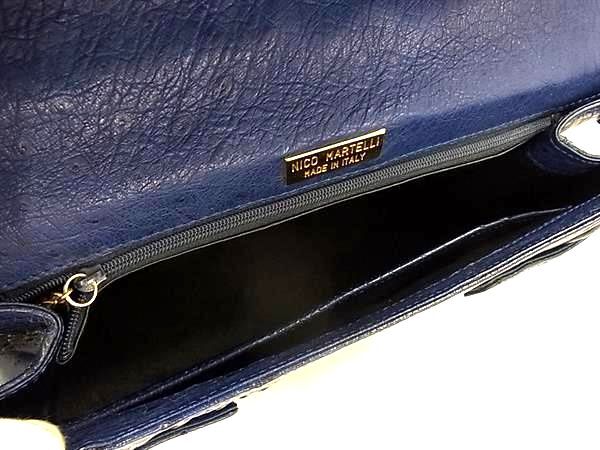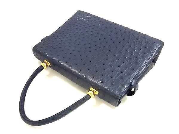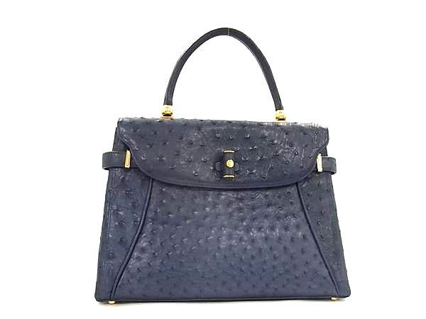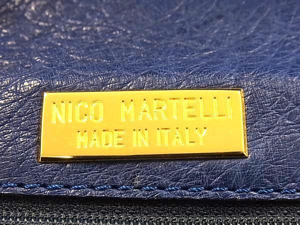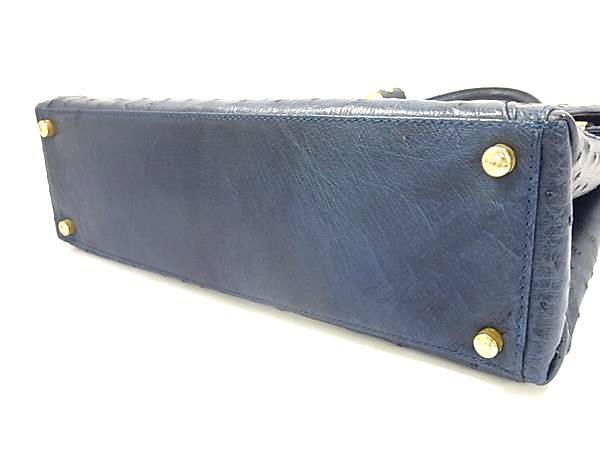 1円 ■極上■本物■美品■ NICO MARTELLI ニコマルテッリ オーストリッチ ワンハンドル ハンドバッグ レディース ブルー系 FR6619