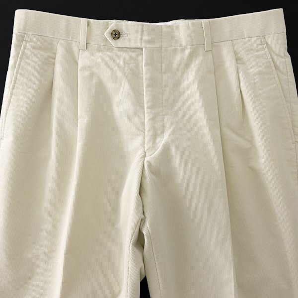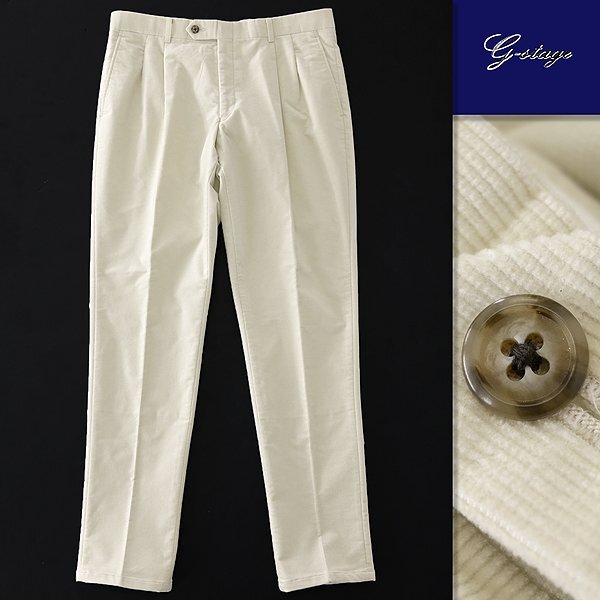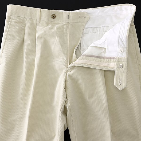 46サイズ(Mサイズ相当・画像は別サイズで撮影) ウエスト83 ※商品に記載されたサイズ・寸法です※ ウエスト実寸83cm(内回り1周) 股上25cm 股下75cm 裾幅18cm 腿幅31cm(股下10cm部分) 表地:綿72% ポリエステル27% ポリウレタン1% 裏地:ポリエステル100% オフホワイト |