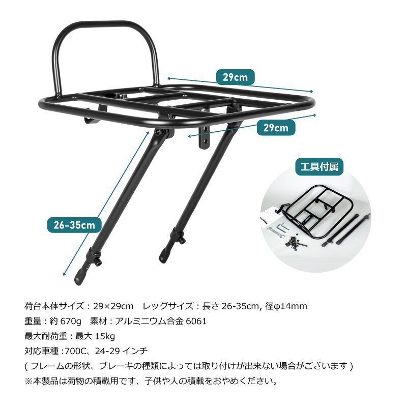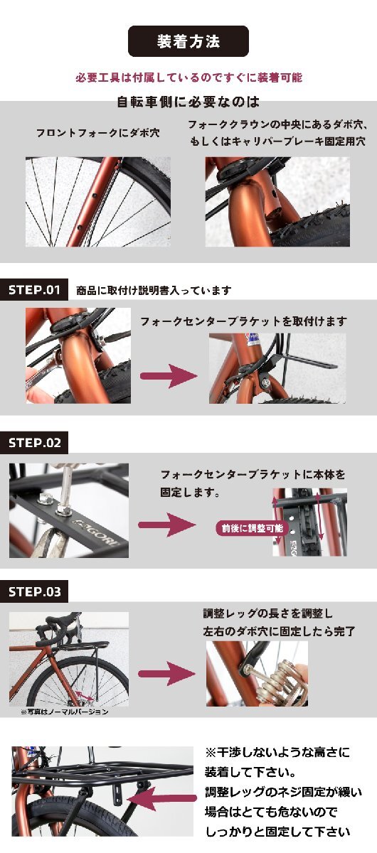 スポーツ自転車でのツーリングやお買物が多い街乗りにぴったりのフロントキャリア。 | |