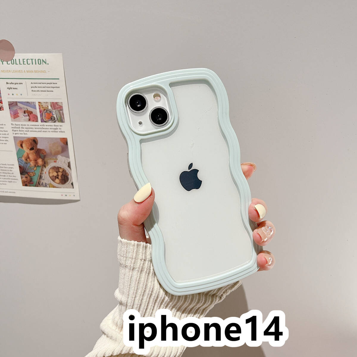 iphone14ケース カーバー TPU 可愛い 波型 お洒落 軽量 ケース 耐衝撃高品質ライトブルー