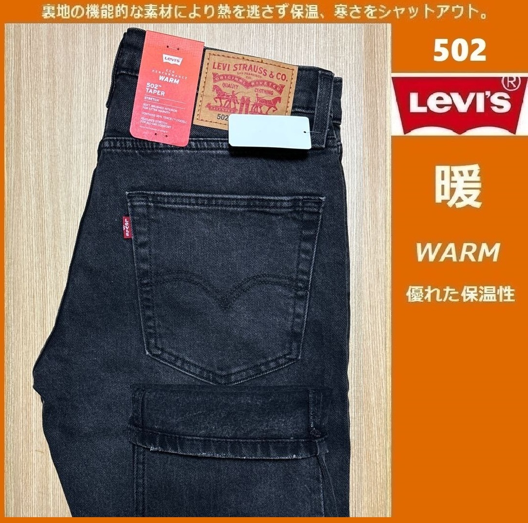 W31 ★暖パン 新品 リーバイス 502 ウォーム テーパード ストレッチ デニム LEVI'S WARM 保温 ジーンズ パンツ ブラック 黒 29507-1469