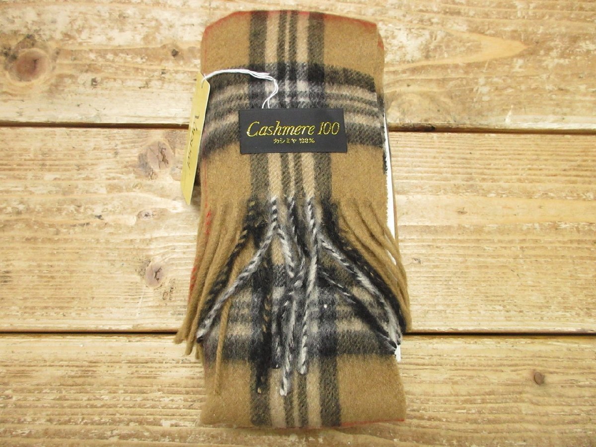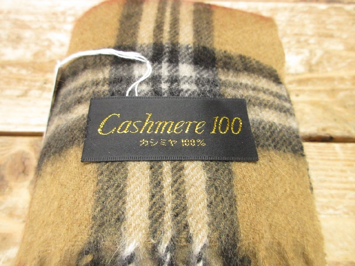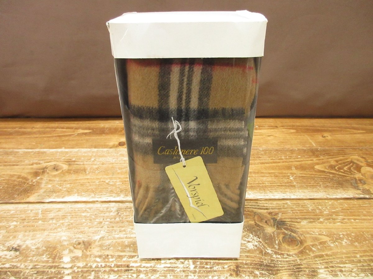 【NA-4340】未使用 VORSPIEL OKUSHI カシミヤ100% マフラー ブラウン系 チェック 同梱可【千円市場】