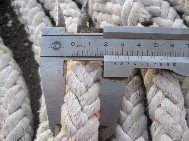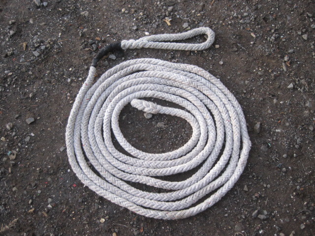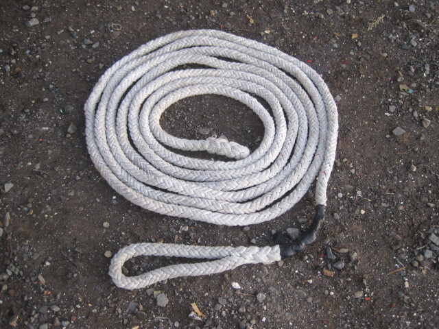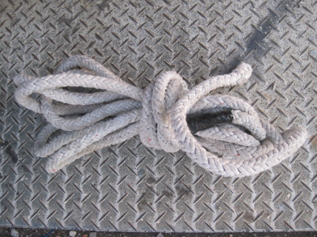 係船ロープ(長さ9m30)の中古品の1本です。片方アイ編み込みしています。