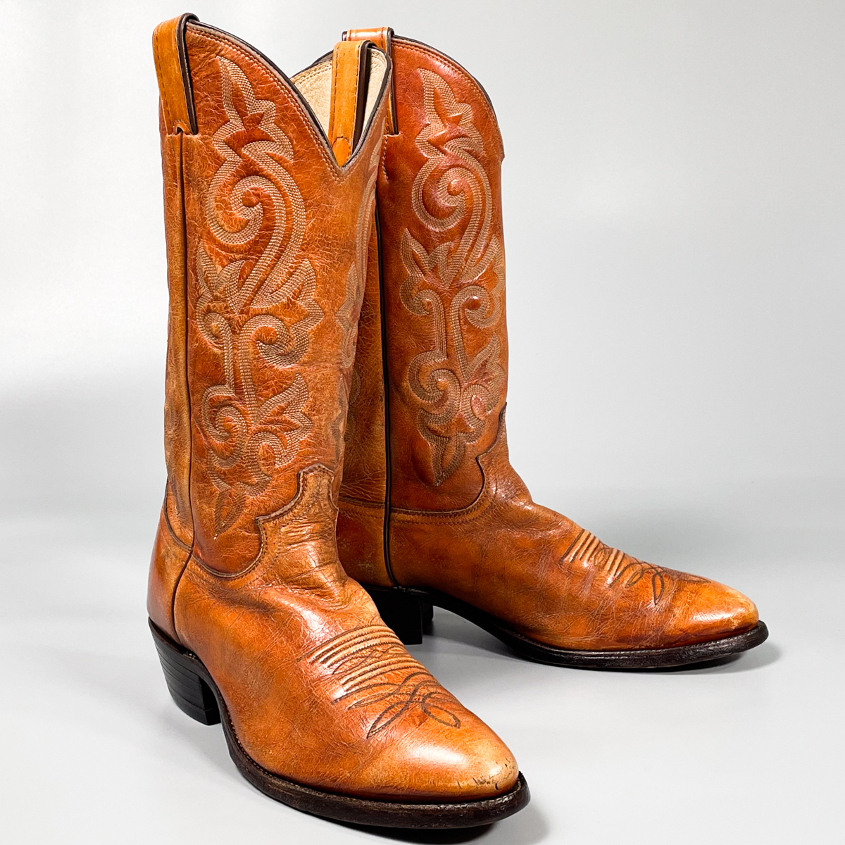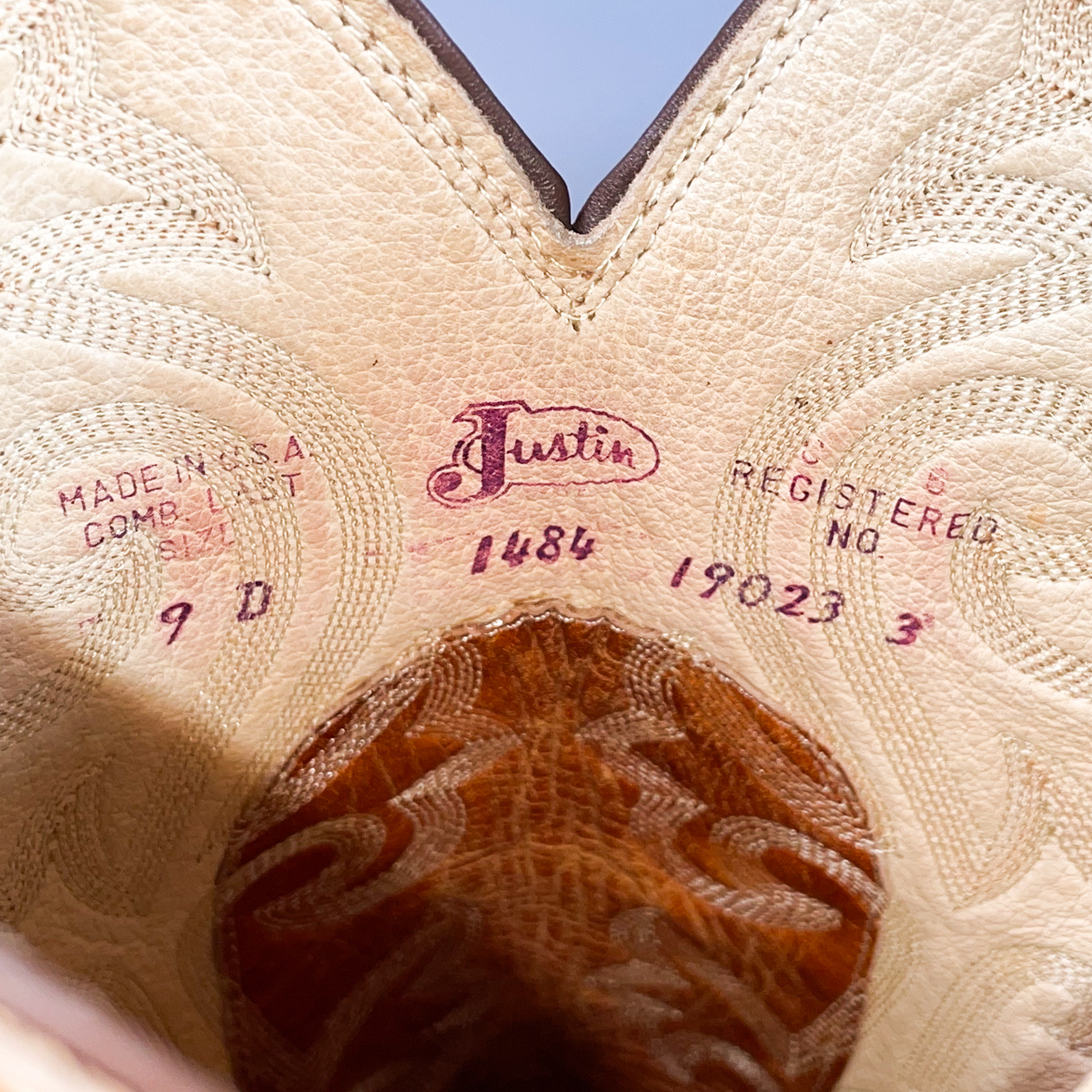 即決 JUSTIN ジャスティン ウエスタンブーツ カウボーイブーツ ブラウン 茶色 メンズ 本革 レザー 革靴 27cm ロングブーツ C1088