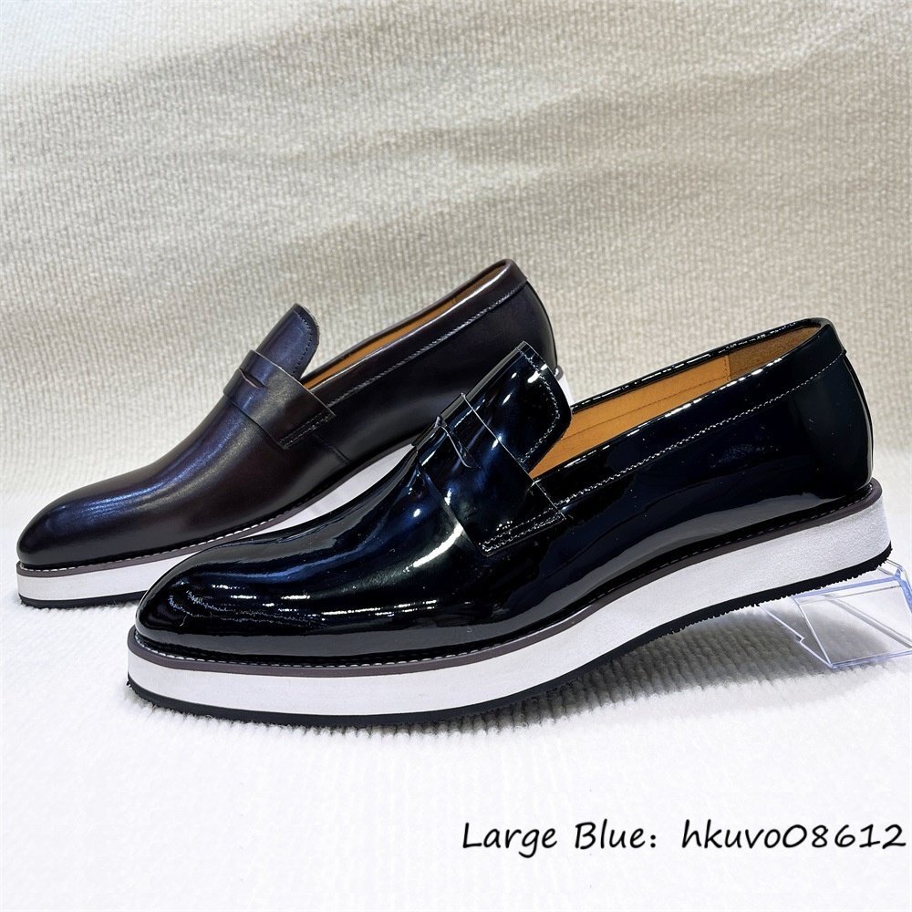 極美品◆ローファー スリッポン 本革 イギリス風 厚底 光沢 職人手作り ビジネスシューズ メンズ レザーシューズ 高級牛革 珈琲色 24.5cm