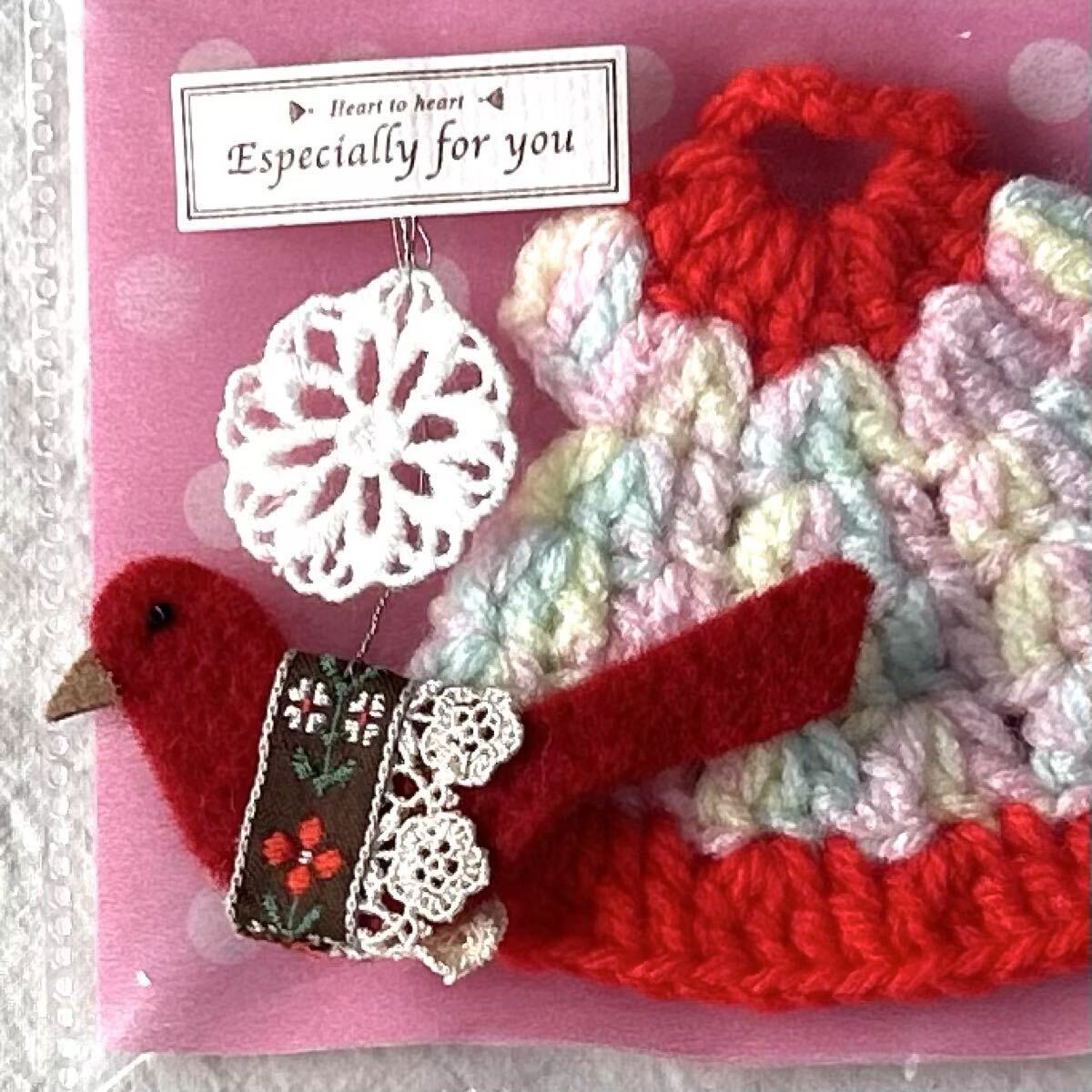 ◇ラッピングに使用している赤の鳥はフェルトです。細い針金を使用しています