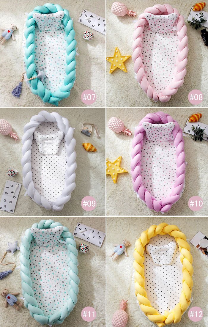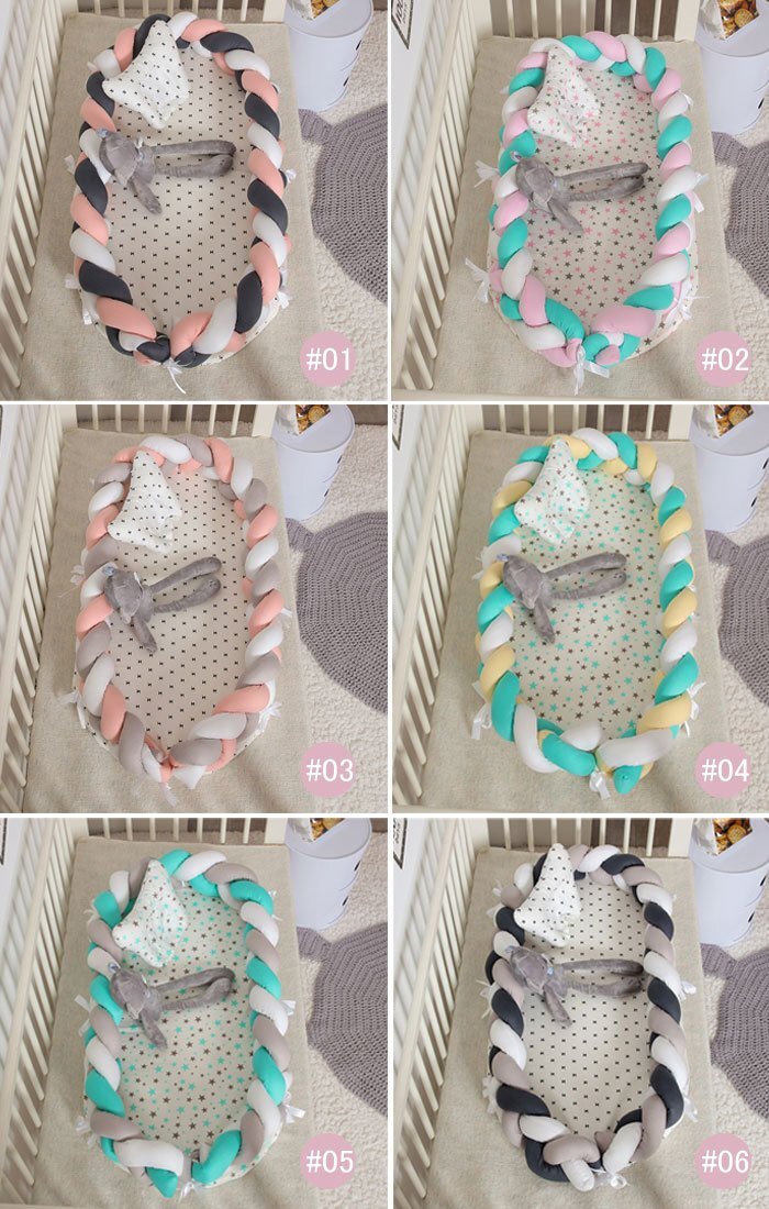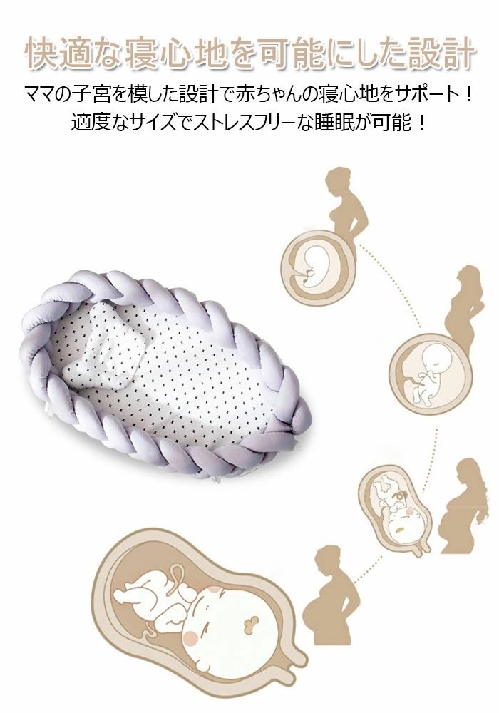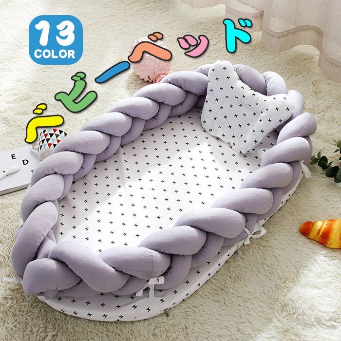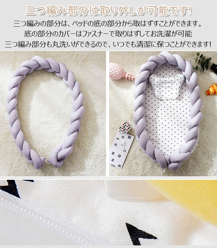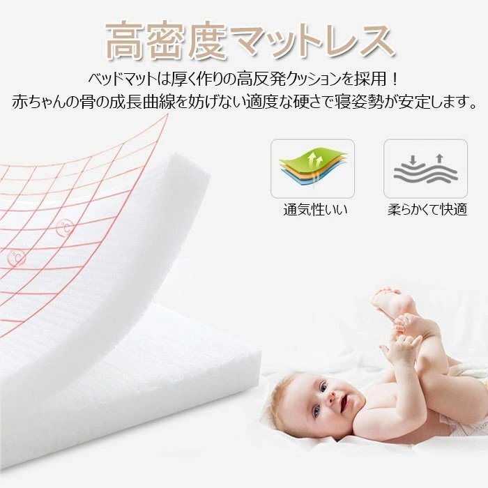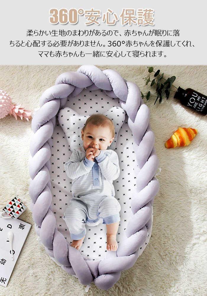 ベビーベッド ベッドインベッド ベビーマット編み ベビー枕付き 寝返り防止 転落防止 通気性抜群 洗濯可能 軽量ベッド 快適な素材出産祝い