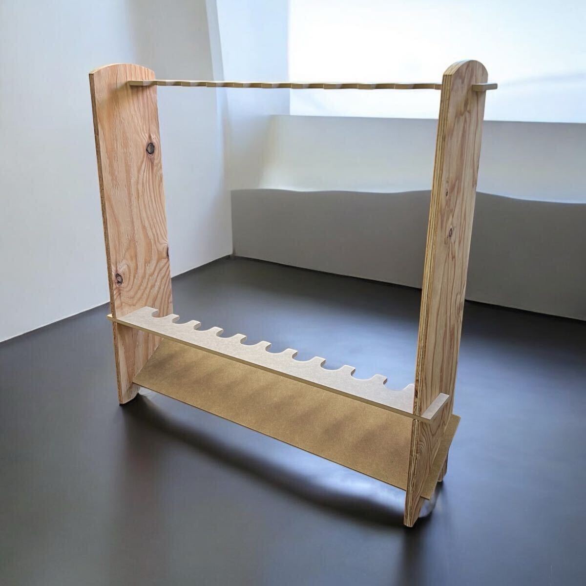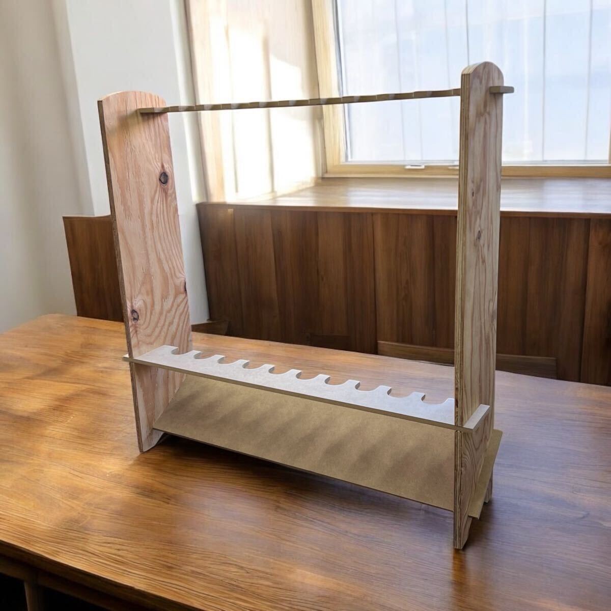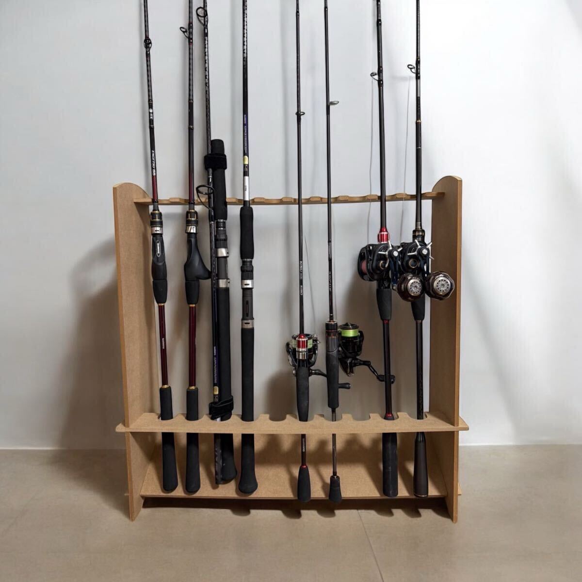シングルタイプの釣竿ラックで、大切なロッドをすっきりと美しく収納。