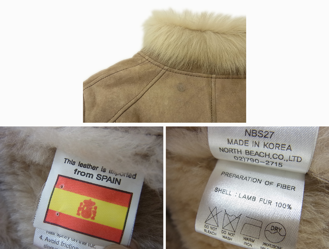 ◇NORTH BEACH スペイン製 ラム ムートンコート ファー シープスキン 羊毛皮 ブラウン フロントベルトトグル ノースビーチ レディース