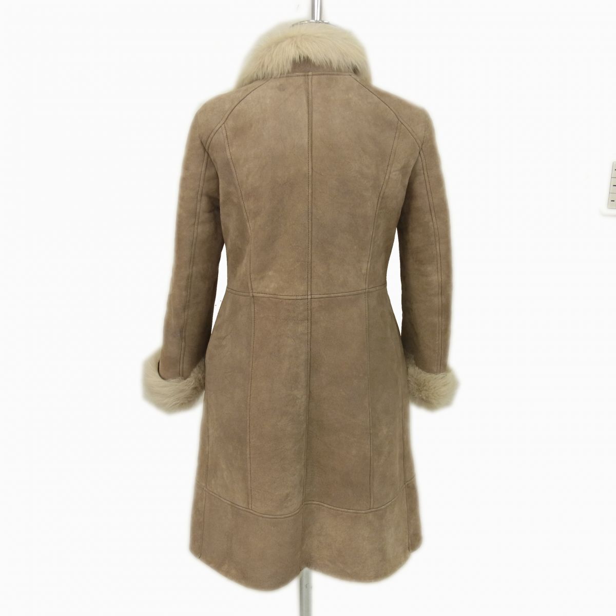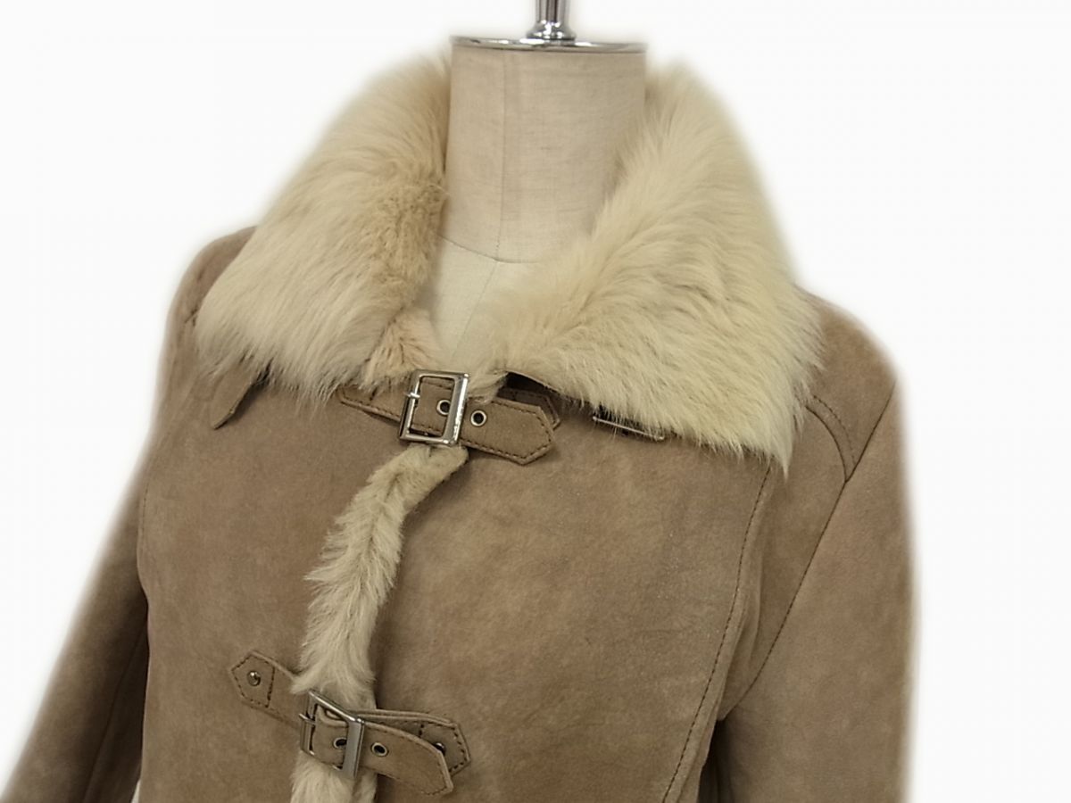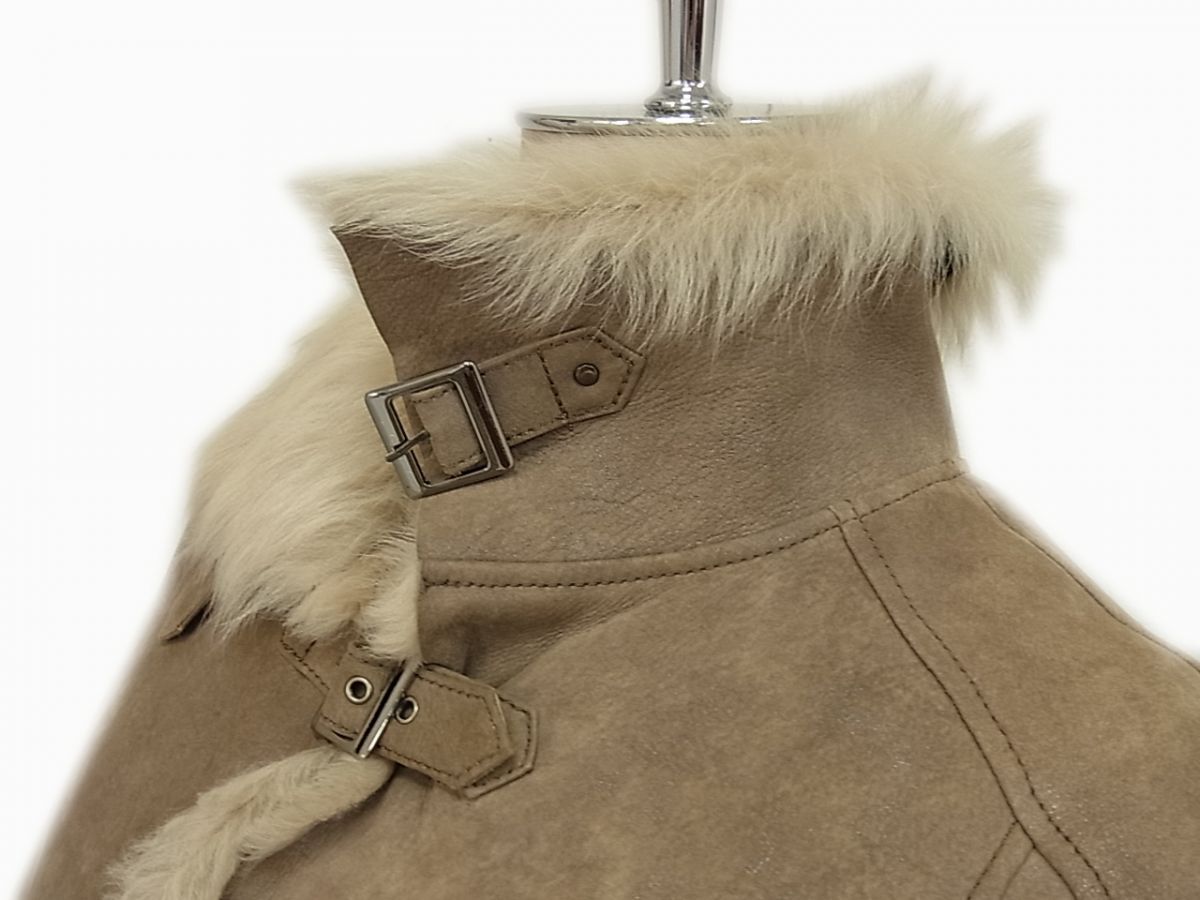 外側はスエードの上品な質感、内側は柔らかく保温性に優れたラムファー仕様。天然ムートンならではの贅沢な暖かさと軽やかな着心地を両立しています。襟元と袖口にはたっぷりとしたファーをあしらい、華やかさと高級感をプラス。フロントにはメタルバックルベルトを配し、デザイン性と機能性を兼ね備えた仕上がりです。ウェブ参考定価は約10万【NORTH BEACH,CO.,LTD】の正規品です。