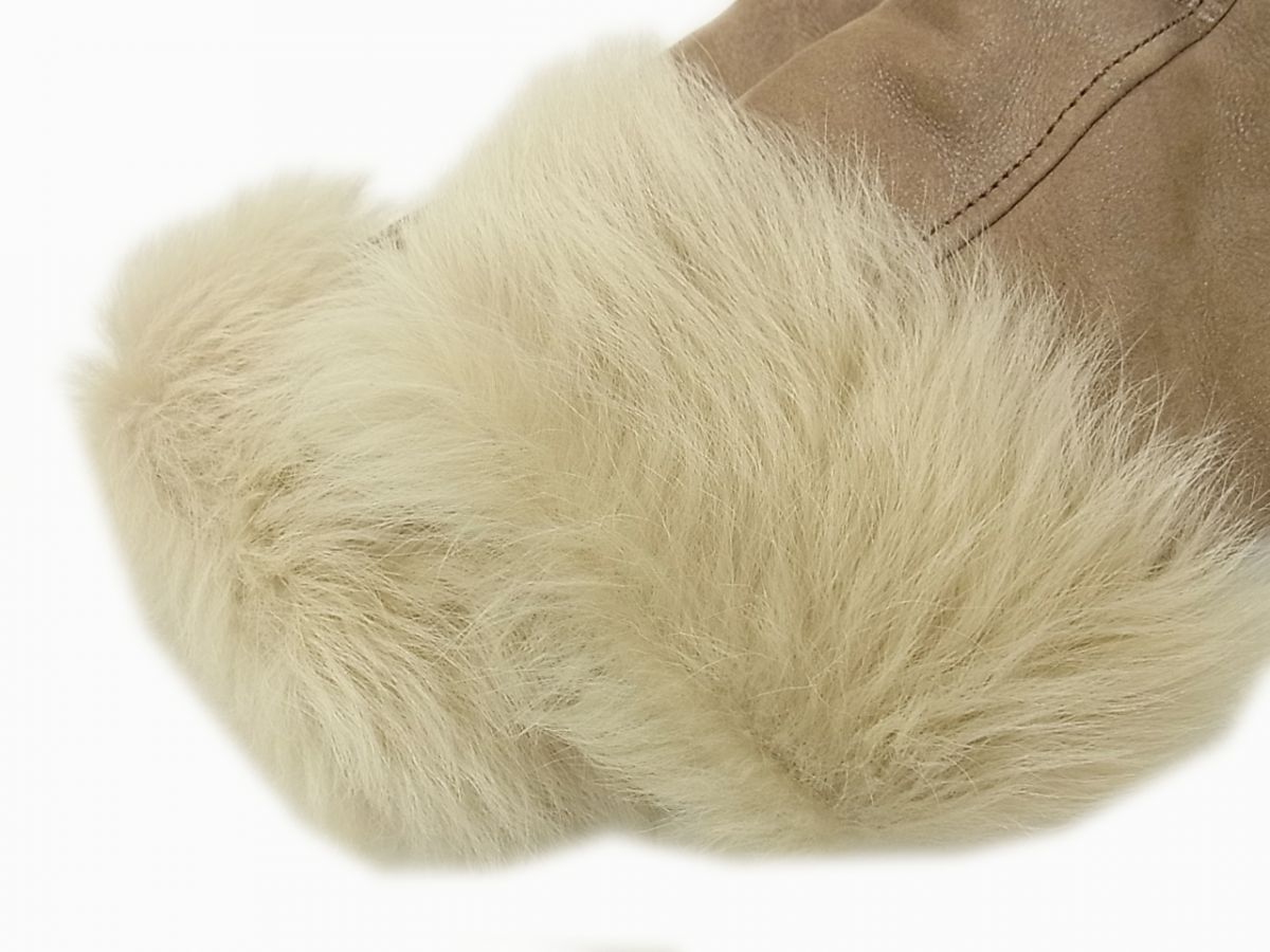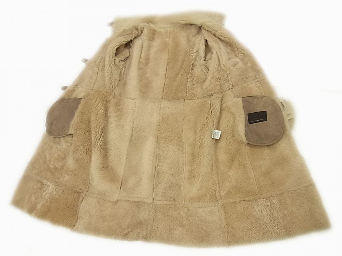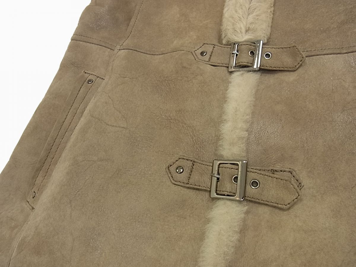 外側はスエードの上品な質感、内側は柔らかく保温性に優れたラムファー仕様。天然ムートンならではの贅沢な暖かさと軽やかな着心地を両立しています。襟元と袖口にはたっぷりとしたファーをあしらい、華やかさと高級感をプラス。フロントにはメタルバックルベルトを配し、デザイン性と機能性を兼ね備えた仕上がりです。ウェブ参考定価は約10万【NORTH BEACH,CO.,LTD】の正規品です。
