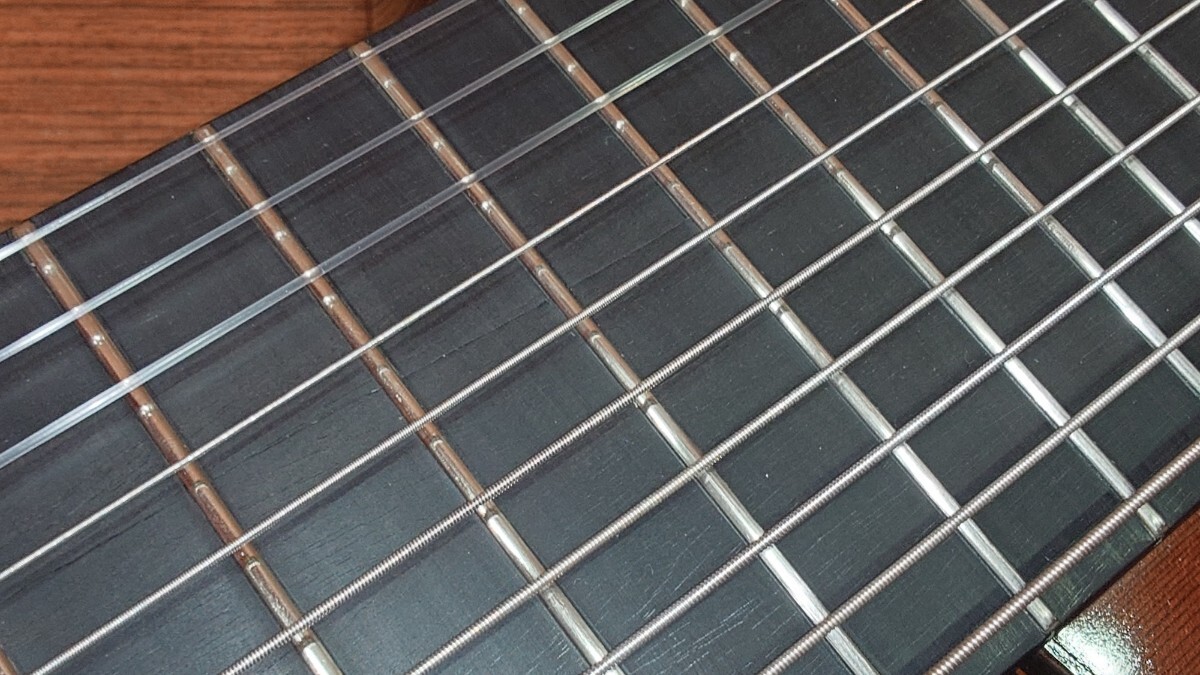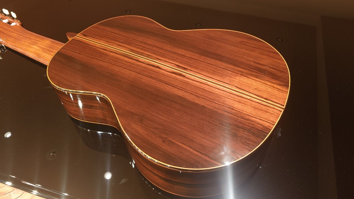スペックは表板はセコイア(レッドウッド)、裏板&横板はハカランダです。弦長は658㍉で⑦弦以下はD C B Aとハナバッハの専用弦を張って使用していました。