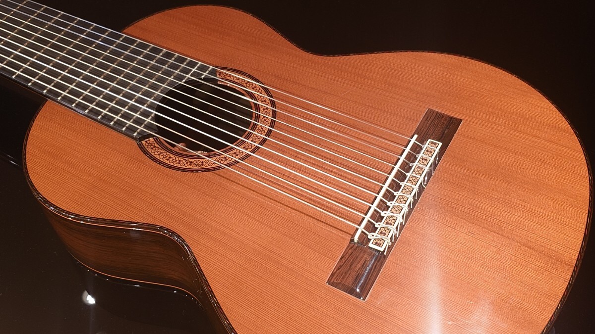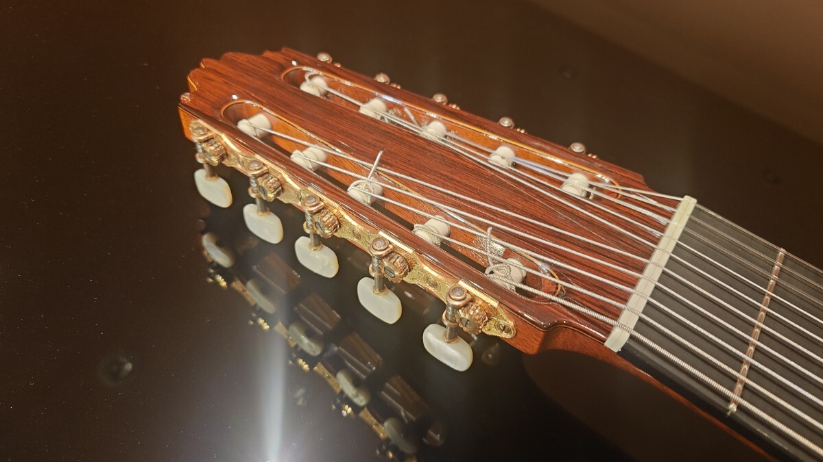 現在では目にする機会が少なくなってしまった10弦ギターです。オリベの10弦は製作本数は少なく、日本国内ではほとんど見かけない珍しい個体だと思います。約30年前に購入し、様々な演奏会で使ってきました。