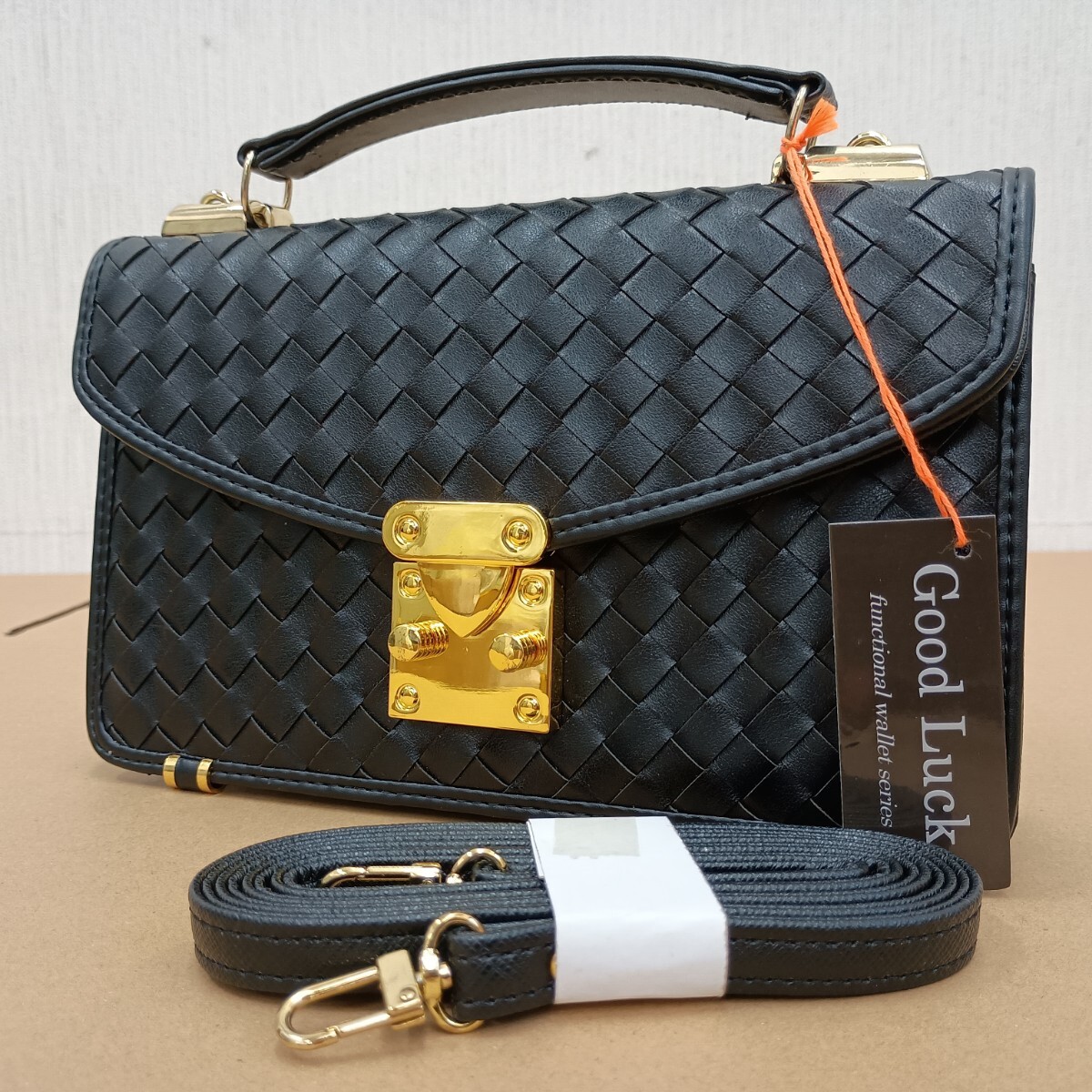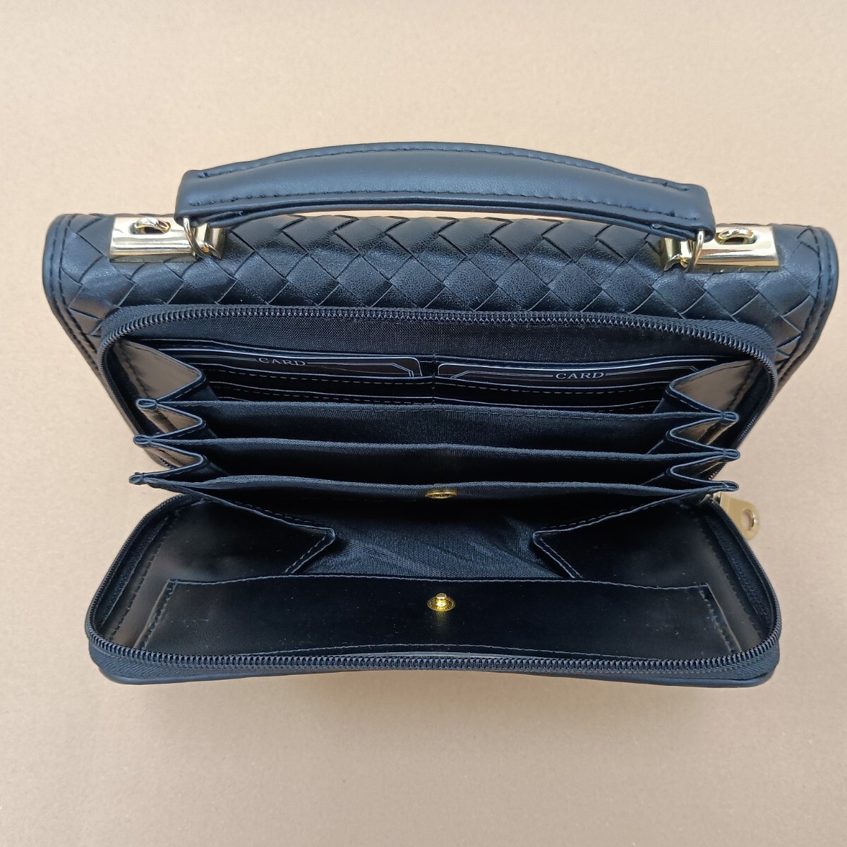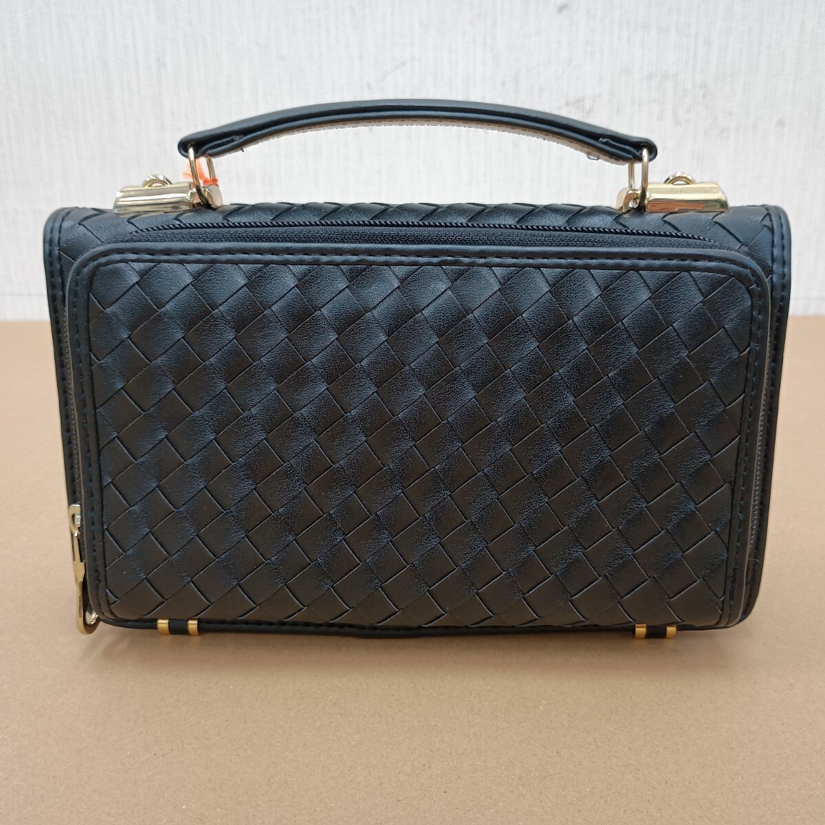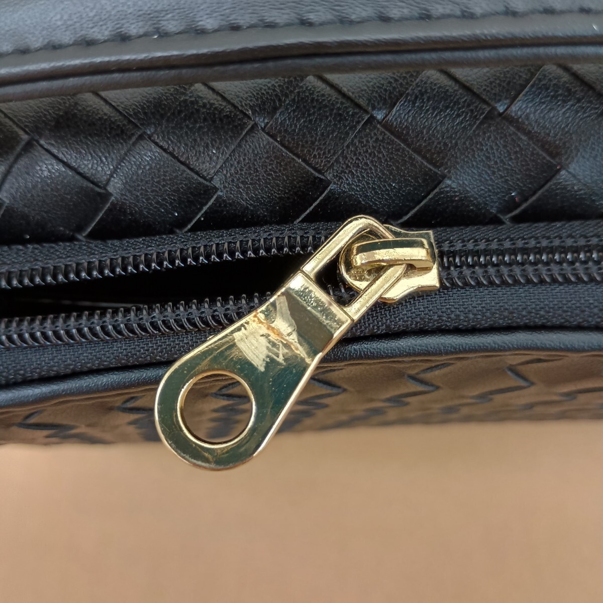 バッグ本体はPUレザーを1枚1枚編み込んでありゴールドの金具と相まって高級感ある見た目となっております。