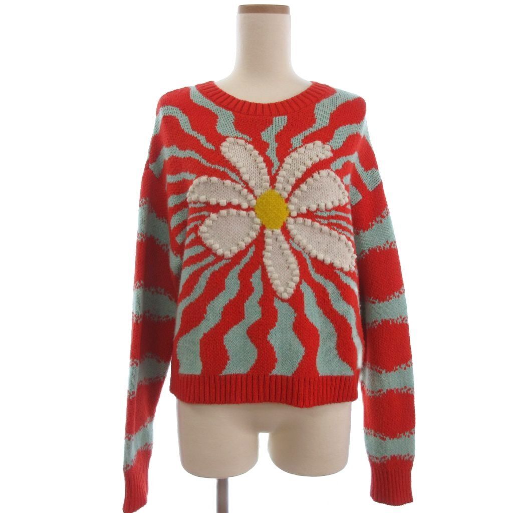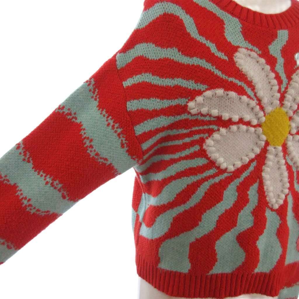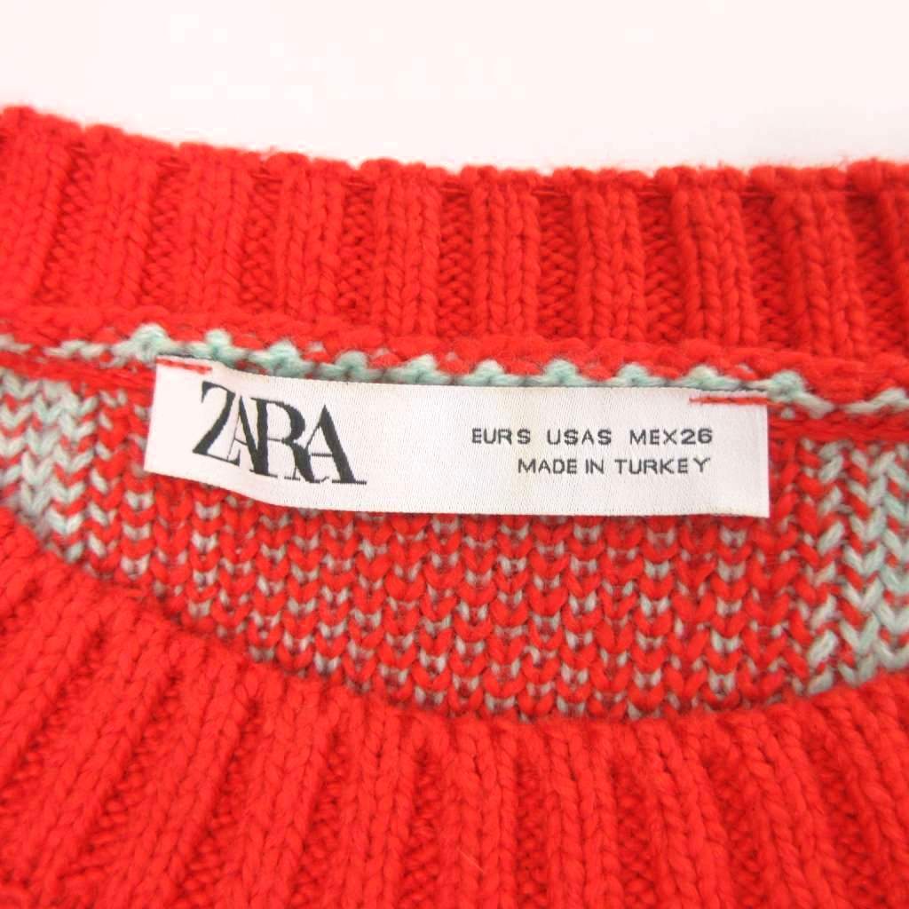 ザラ ZARA フローラル ジャガード ニット セーター 長袖 赤 レッド系 S レディース