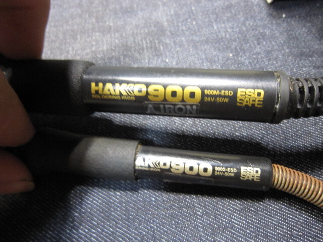 半田ごて1本グリップが少しずれてます。半田ごて置きのバネ状パーツにメッキ錆あります。