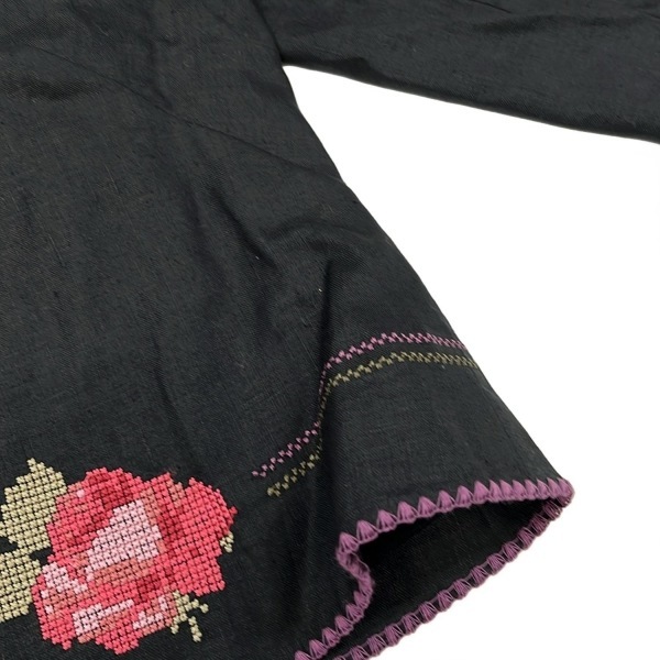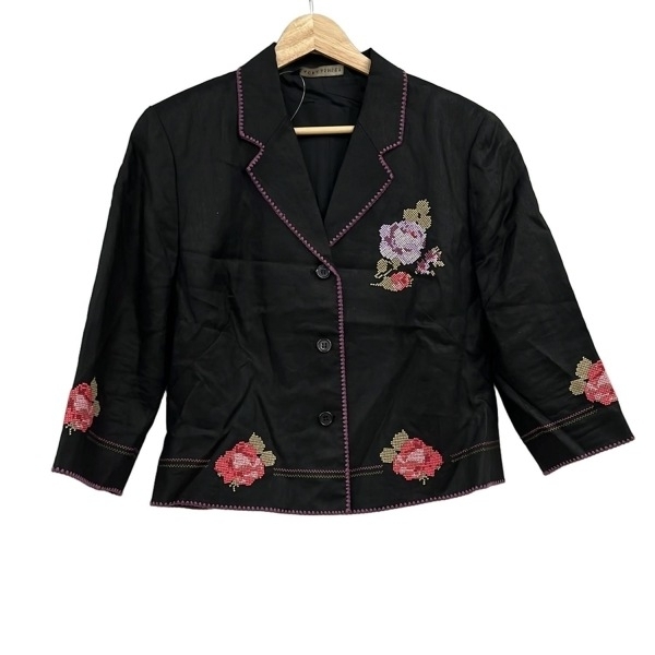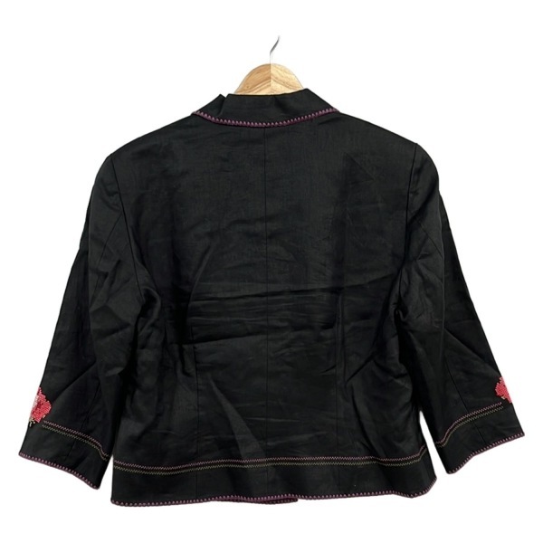 ローラアシュレイ LAURAASHLEY サイズ13 L - 黒×パープル×マルチ レディース 長袖/麻/刺繍/フラワー(花)/春/秋 ジャケット