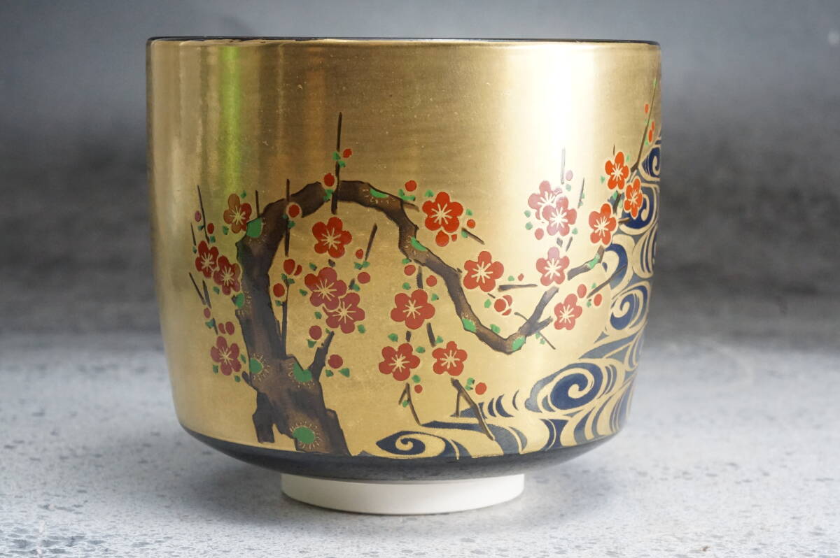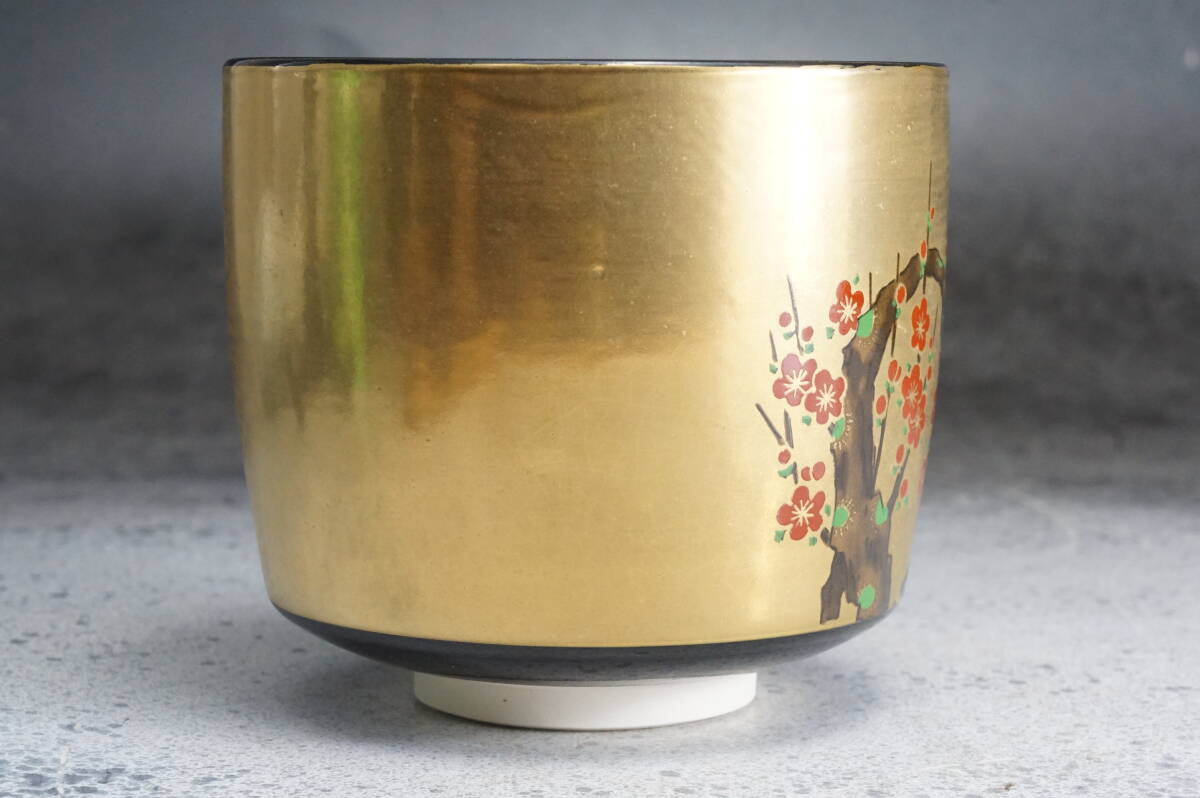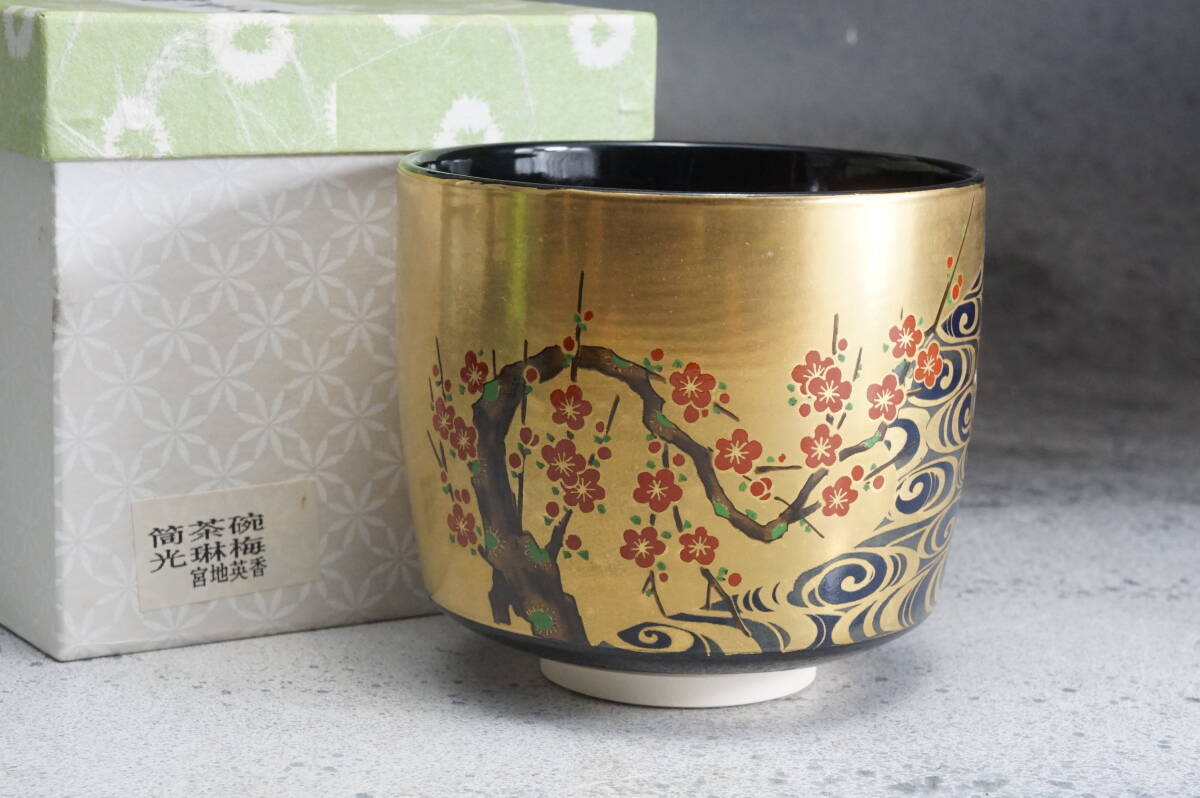 京焼筒茶碗 光琳梅 英香銘 宮地英香 11cmx9cm / 茶道具 茶懐石 茶事 茶碗 抹茶碗 織部 志野 古瀬戸 表千家 裏千家