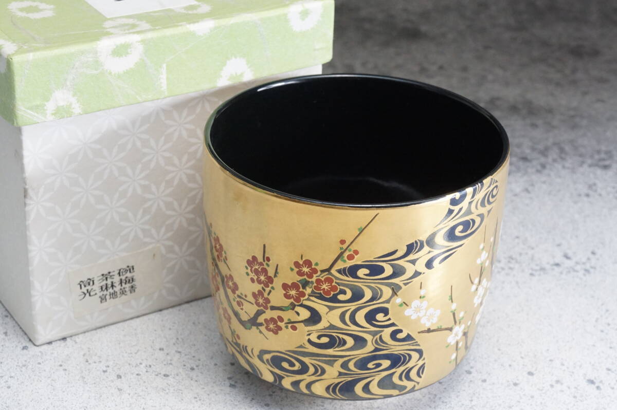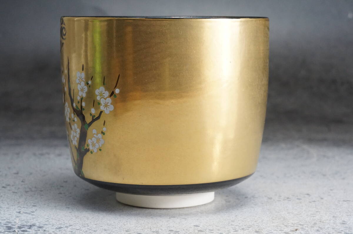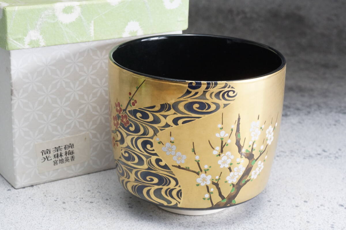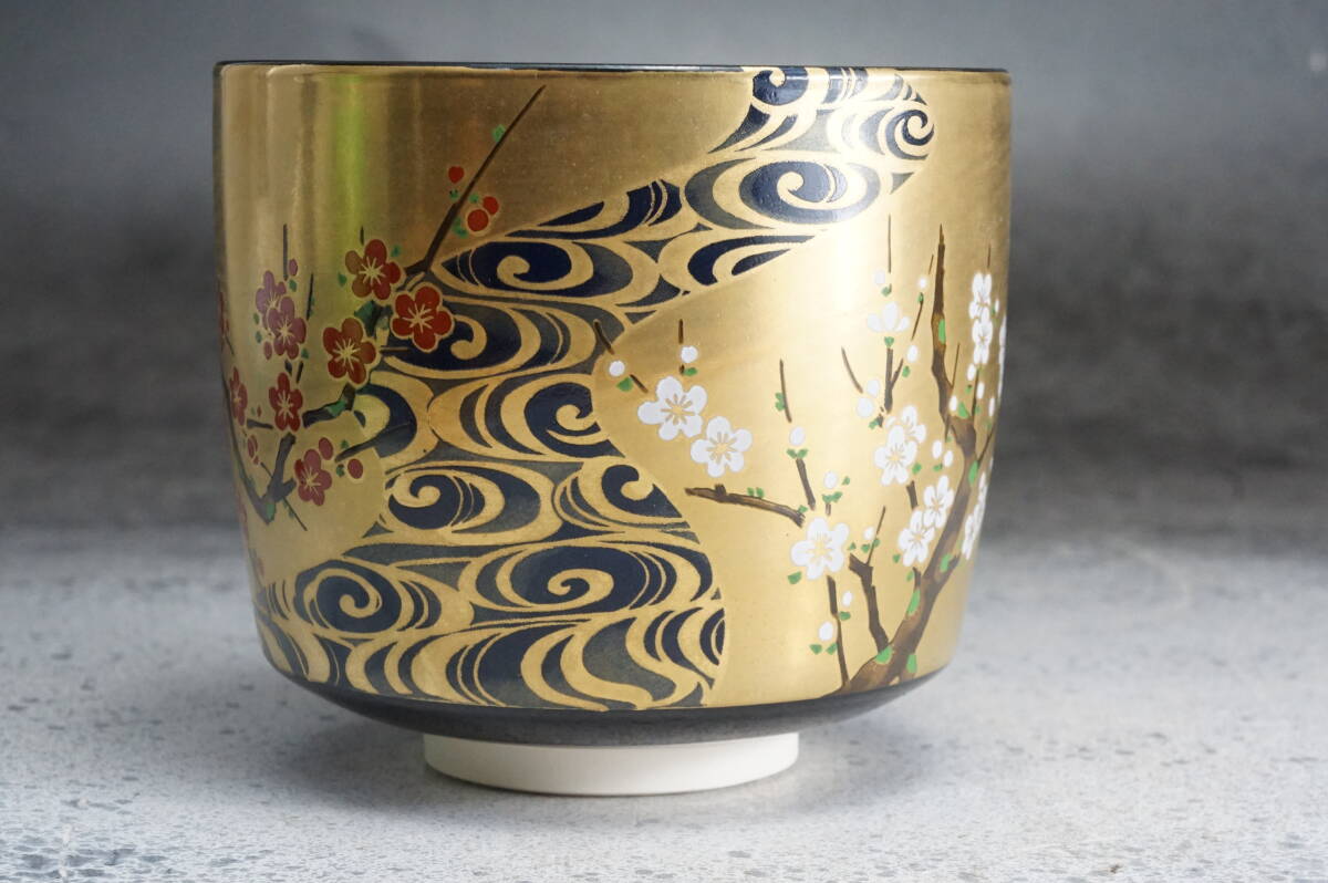 京焼筒茶碗 光琳梅 英香銘 宮地英香 11cmx9cm / 茶道具 茶懐石 茶事 茶碗 抹茶碗 織部 志野 古瀬戸 表千家 裏千家
