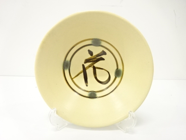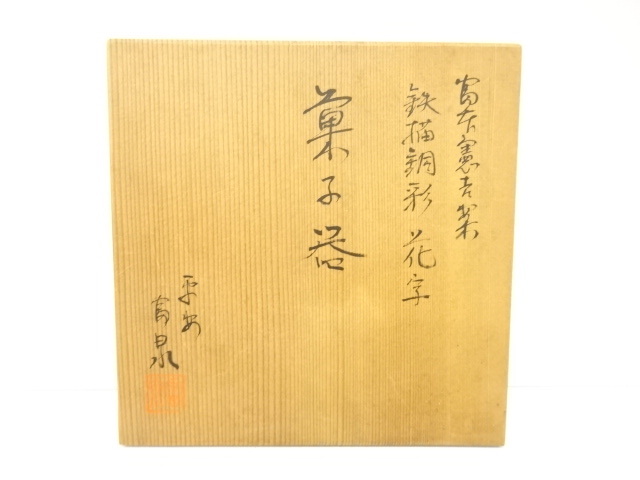 平安富泉造 冨本憲吉案 鉄描銅彩花字 菓子器 (AAAJ1DHP-034)