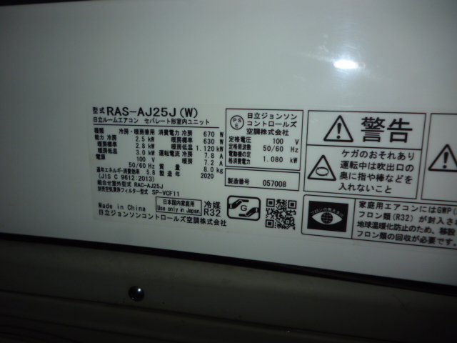 | R592 日立 白くまくん ルームエアコン 主に8畳 RAS-AJ25J(W) | |||