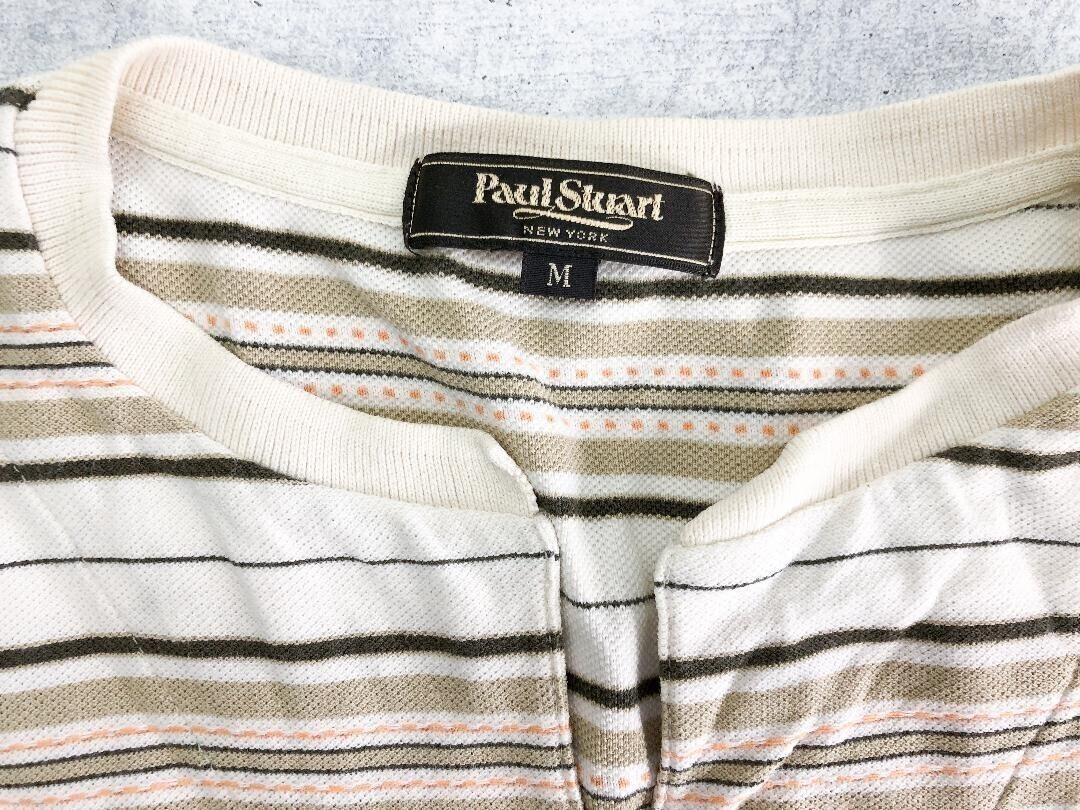 Paul Stuart ポール・スチュアート スリットネック 鹿の子 ポロ生地 ボーダーTシャツ トップス