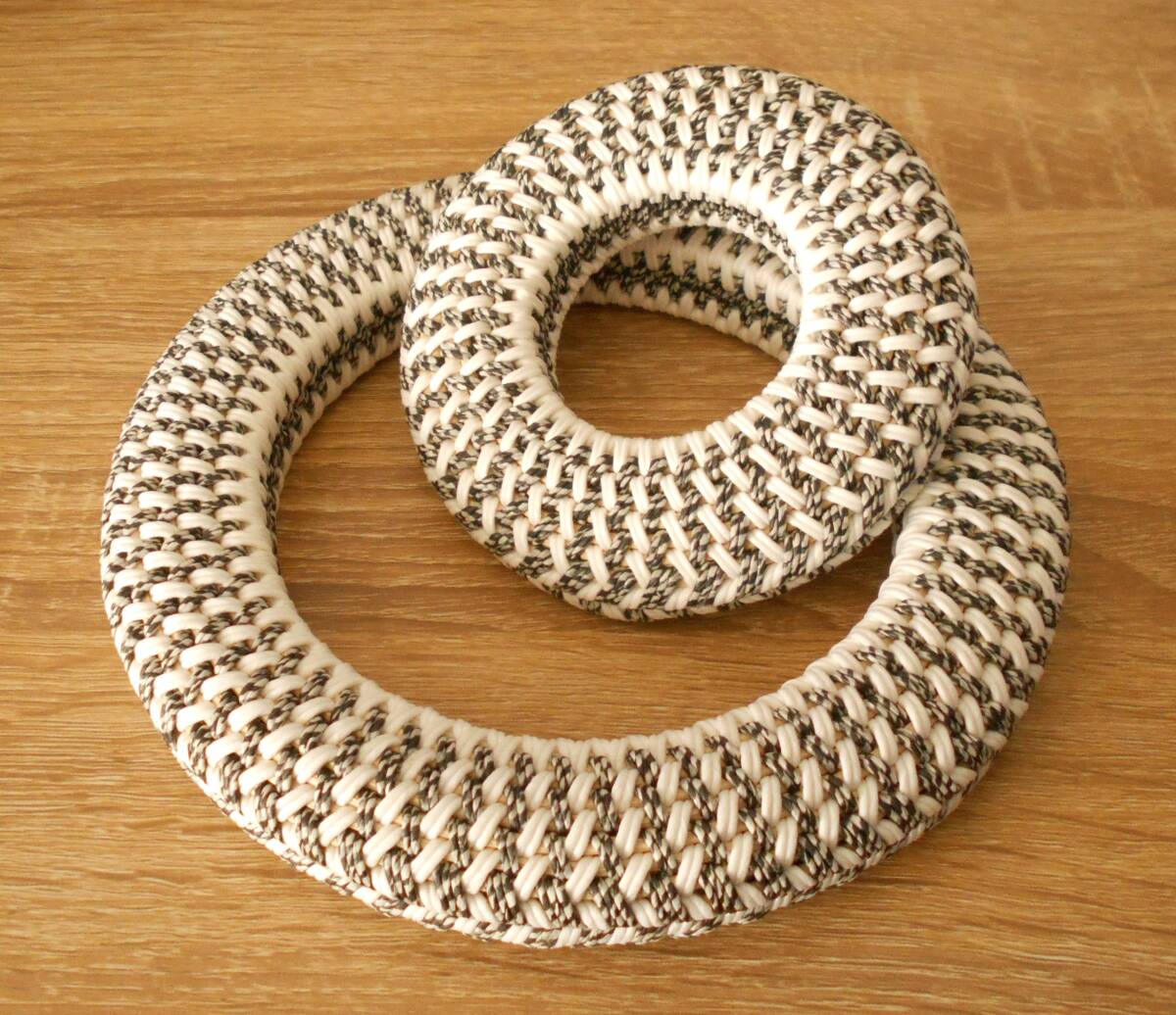 ★弓道 弦巻(大小2点セット)籐&クラフト細工 ゼブラ系(黒)/W009★