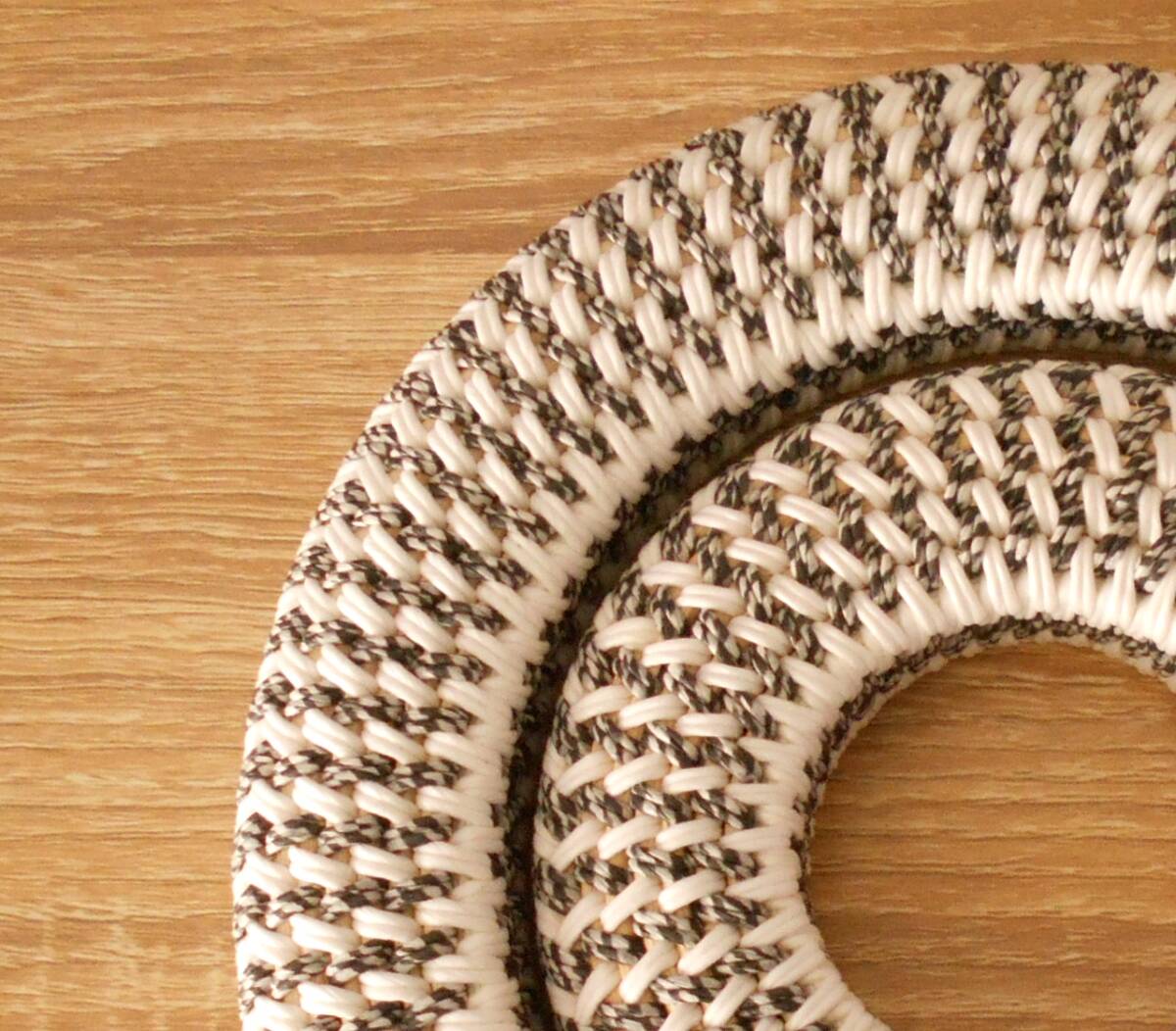 籐芯にクラフト紐で丹念に編み上げたものに塗りを入れたオリジナルです。