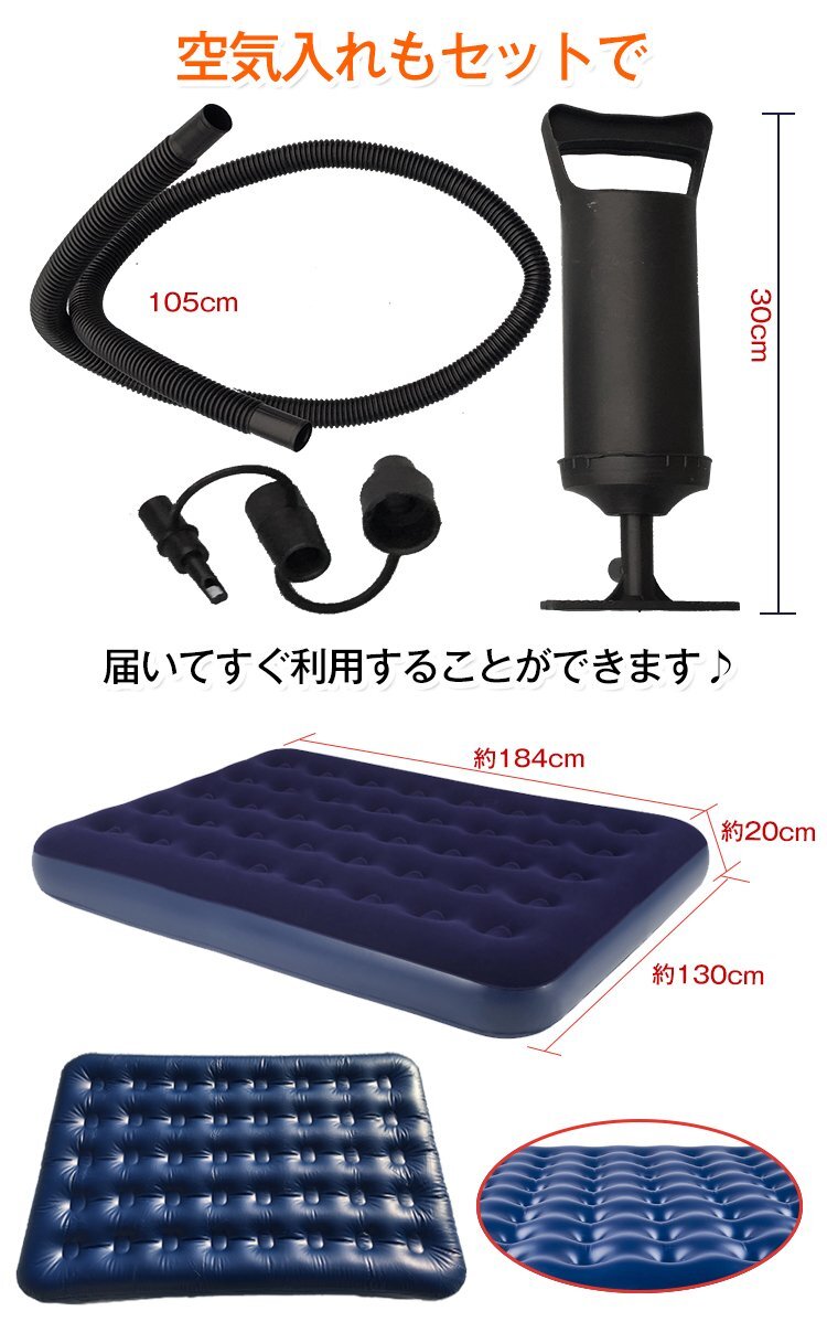 【セット内容】:エアーベッド本体/空気入れ/ホース/3種類のノズル