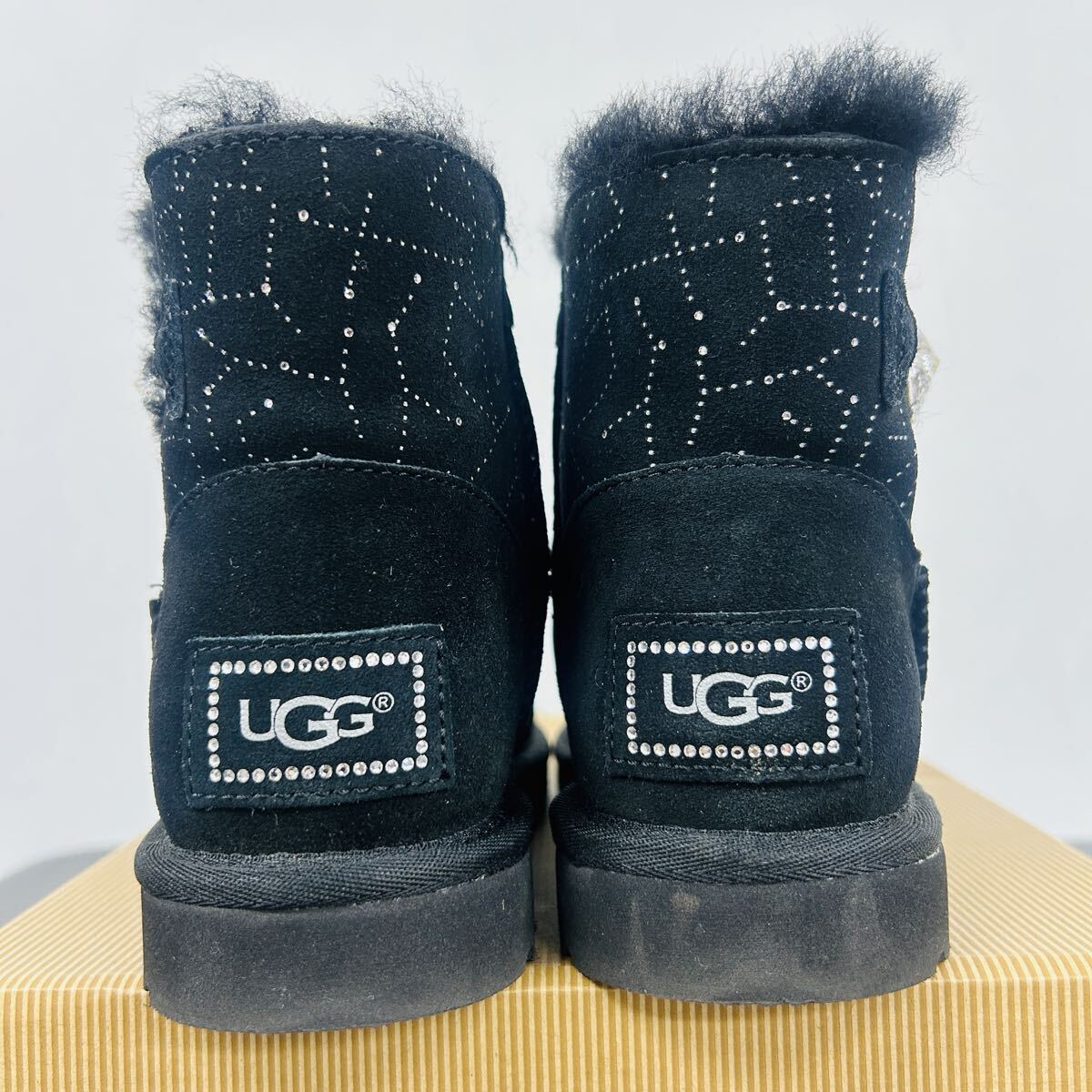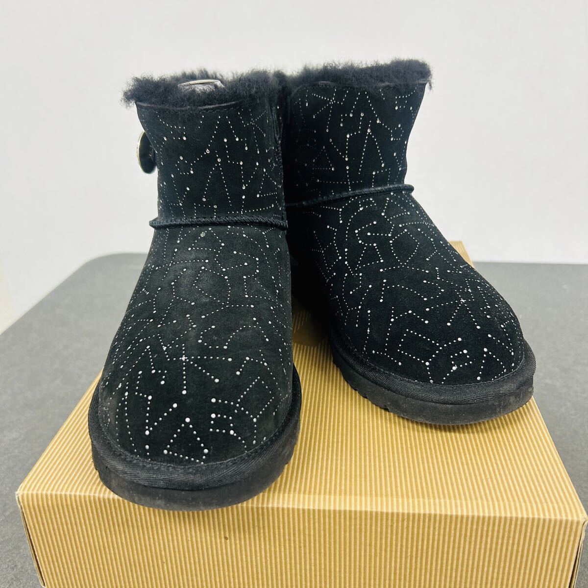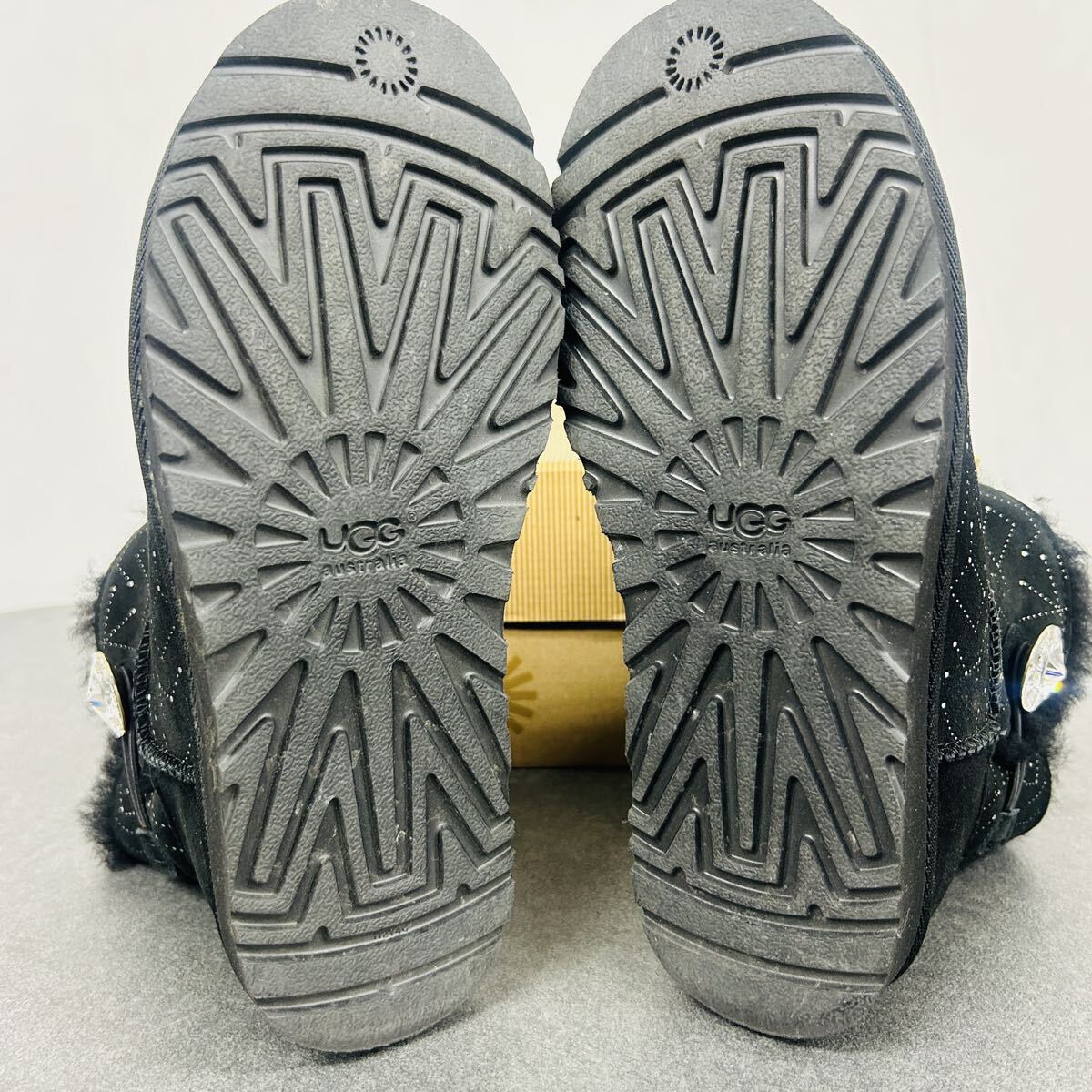 1円〜【試し履きのみ/美品】UGG アグ ムートンブーツ ショートブーツ 黒 W ミニ ベイリー スワロフスキー 22cm レディース
