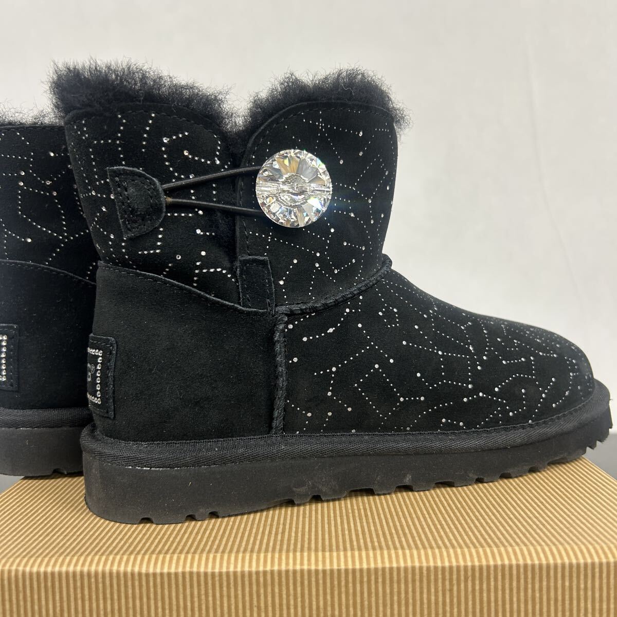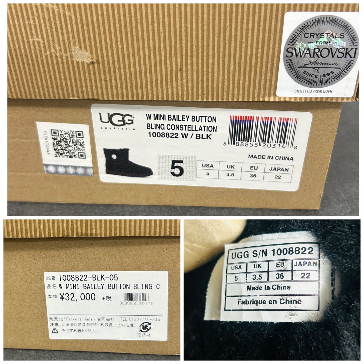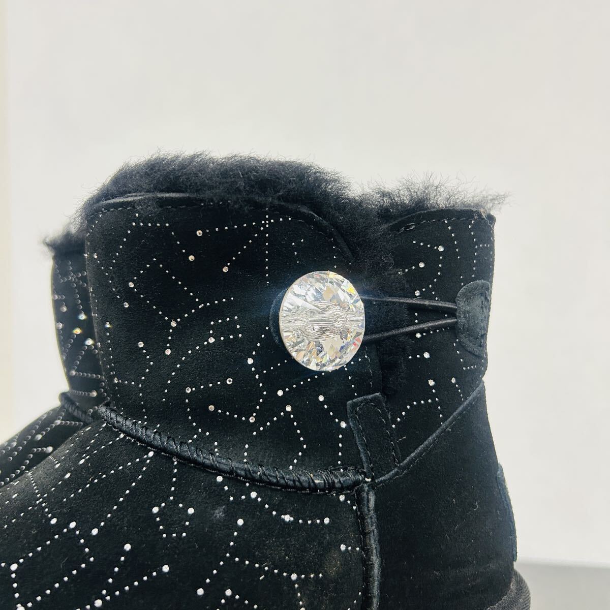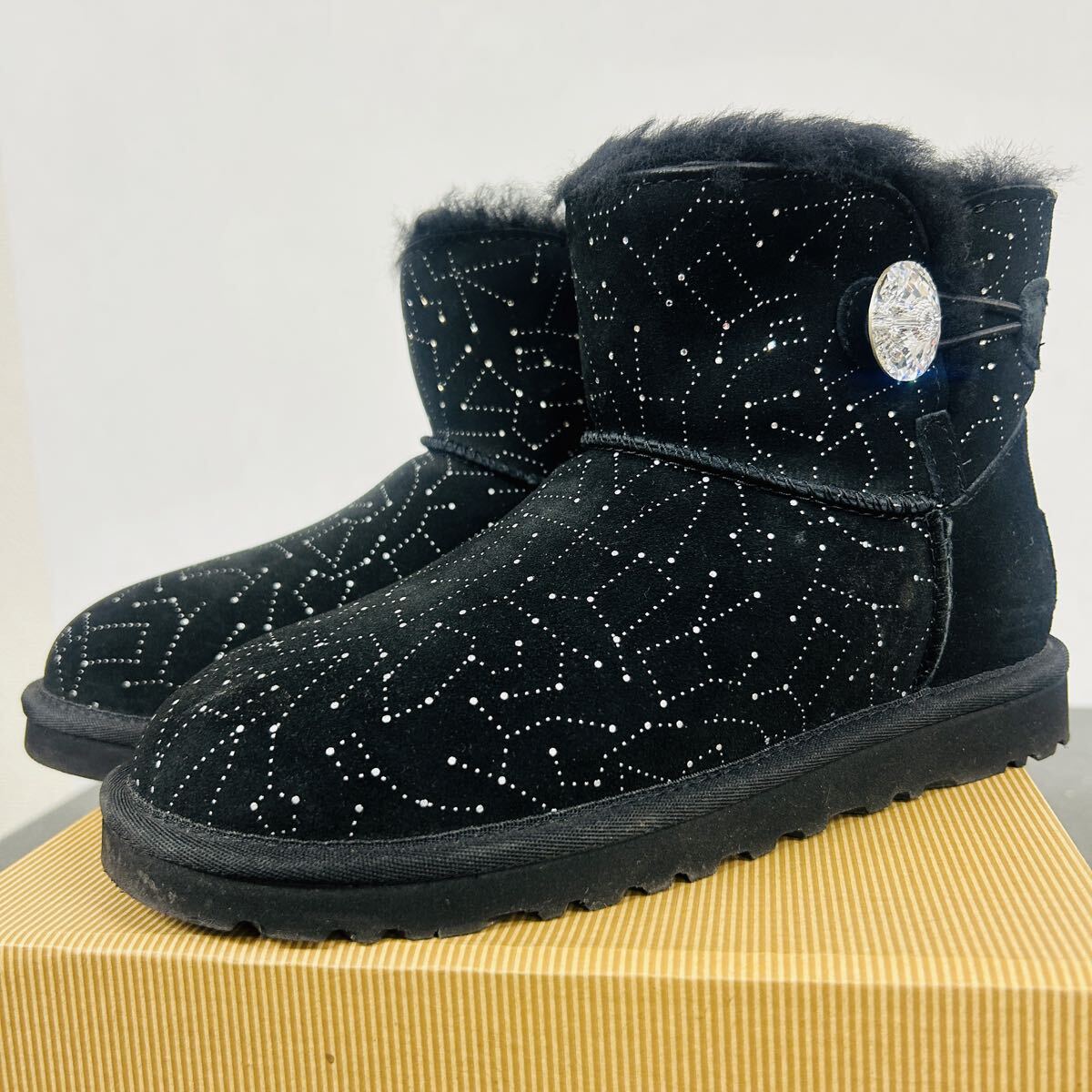 1円〜【試し履きのみ/美品】UGG アグ ムートンブーツ ショートブーツ 黒 W ミニ ベイリー スワロフスキー 22cm レディース
