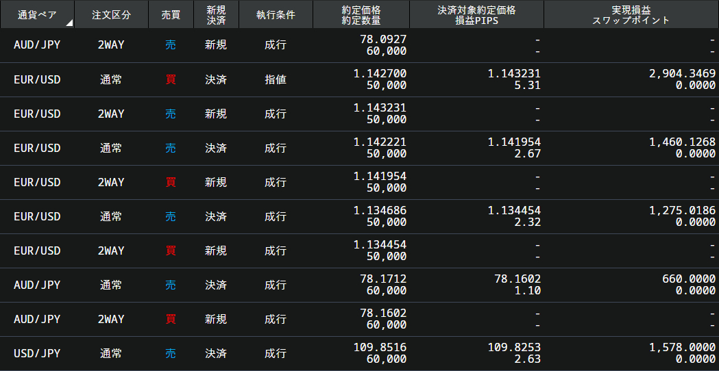 ボラリティの大きな相場ほどトレード機会が増えて、時には1日に50回程度売買することもあります。