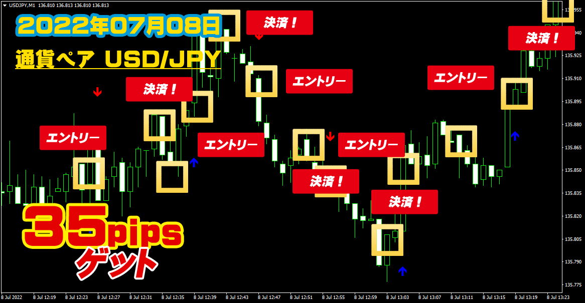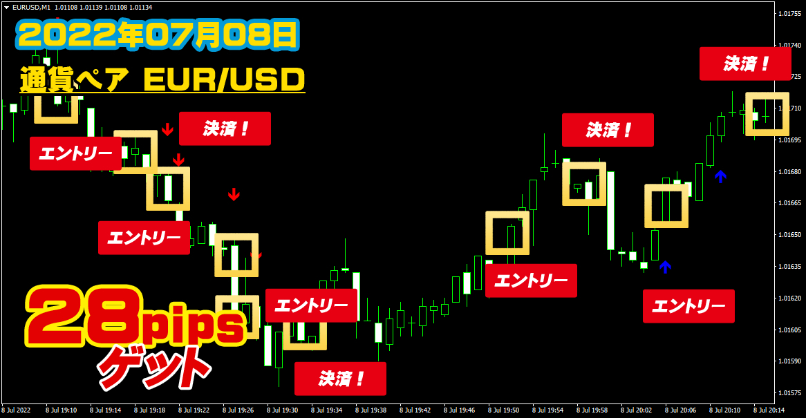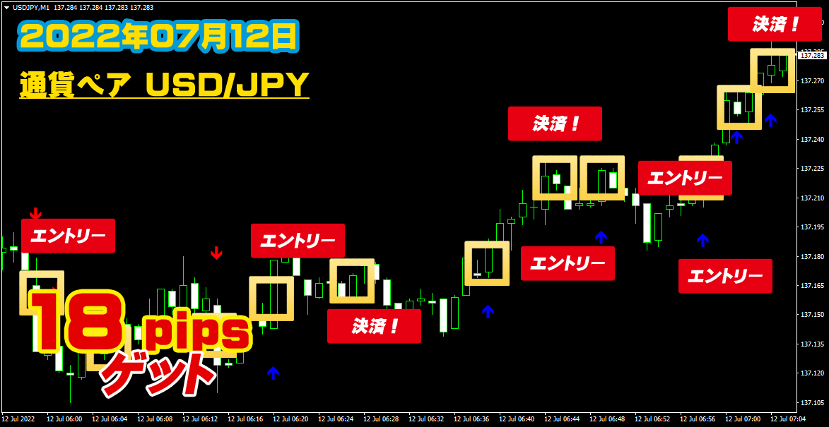 これにより、1~5pips程度の利益を何度も刈り取ることが可能になります。