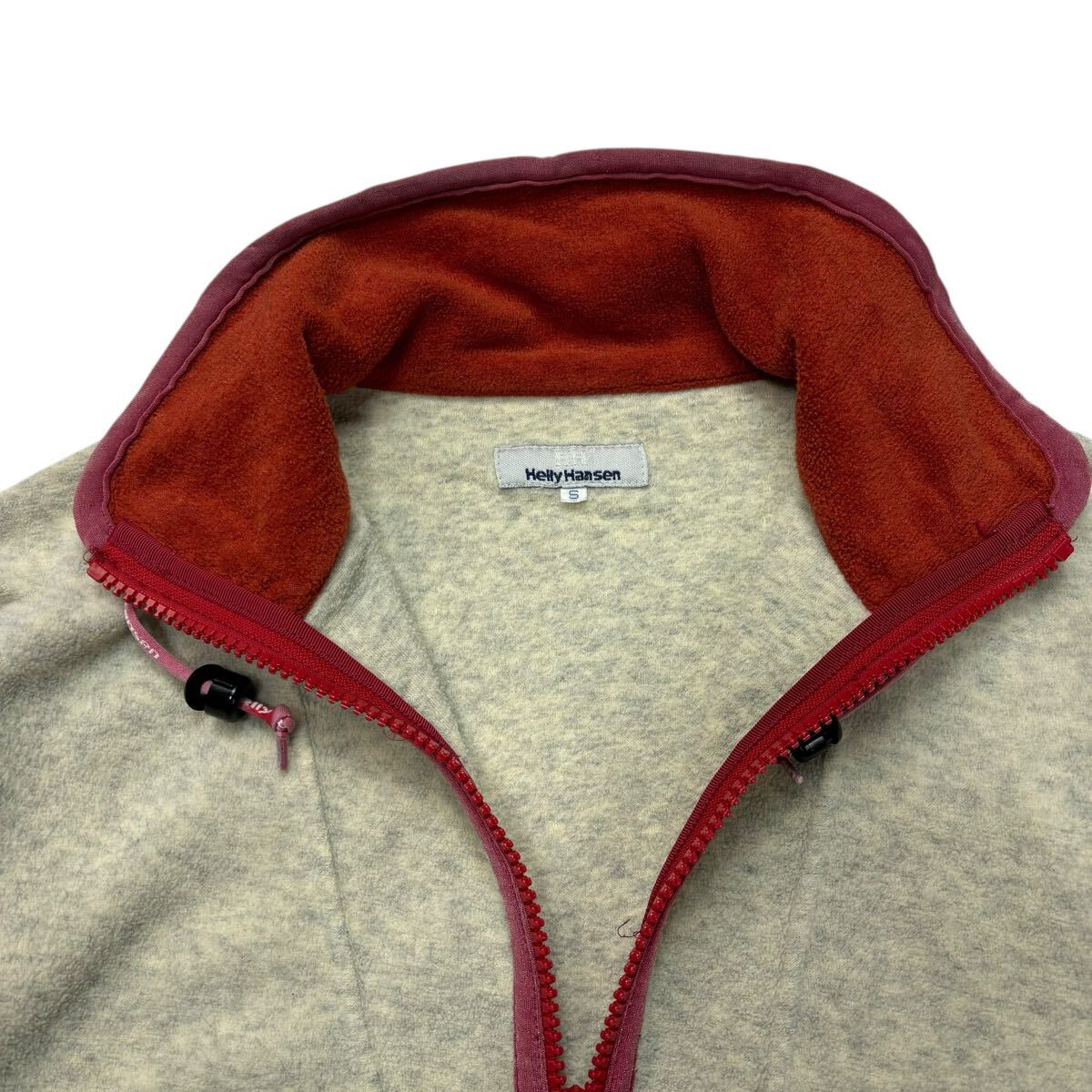 (KA1108) 90s Helly Hansen ヘリーハンセン ハーフジップ フリースジャケット クリーム グレー オレンジ Sサイズ 古着 サムホール シンプル