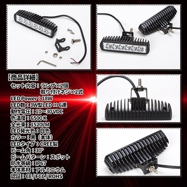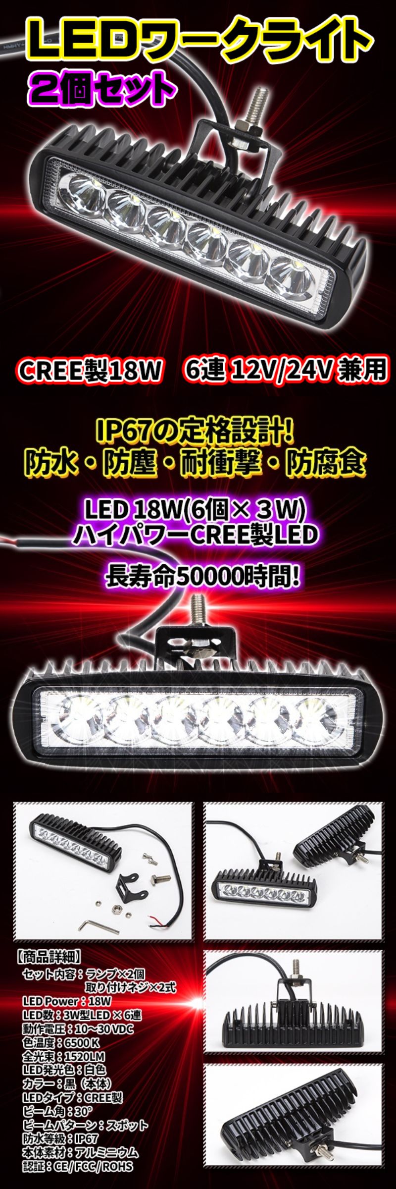 LED ワークライト 2 個 セット 防水作業灯 CREE 製 18 W 6連 12V 24V 兼用 バイク 車 重機 トラック カスタム パーツ ライト 作業灯 工事