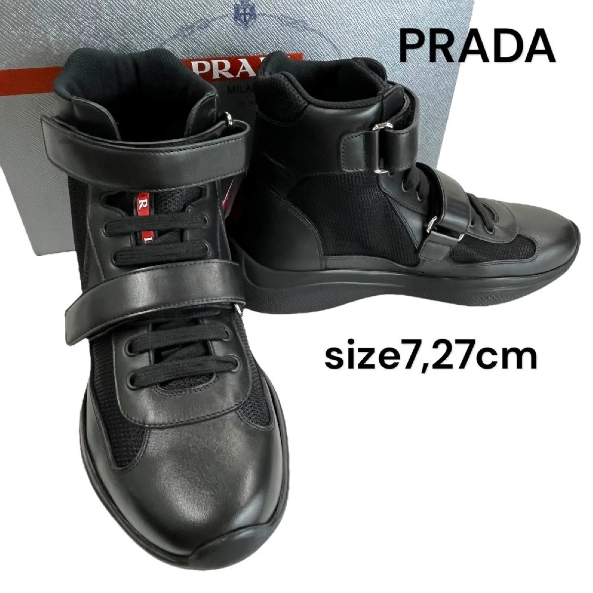 ●極美品 プラダ PRADA プラダ アメリカズカップ ハイトップ ハイカット スニーカー レザー 7 メンズ S5P050