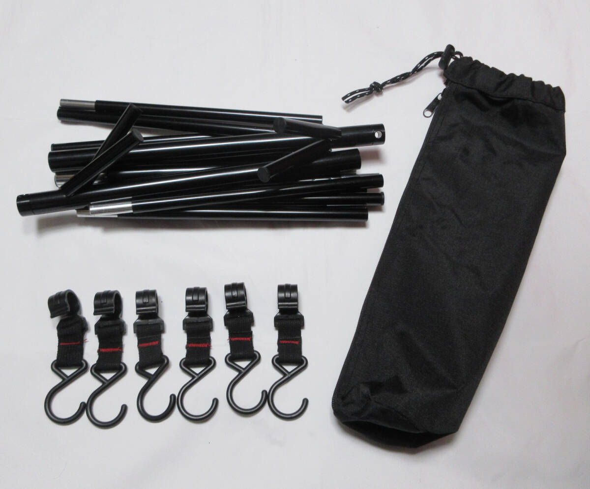 全てがパイプ内のゴム紐で繋がっており、組み立てると幅775mm、高さ705mm程度のサイズ感です。