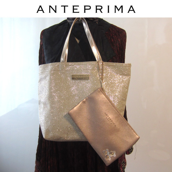 美品 ANTEPRIMA/アンテプリマ★ ミニポーチ付きハンドバッグ ゴールド