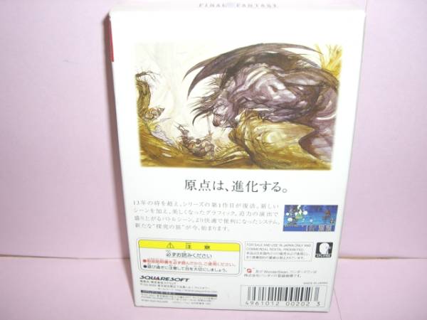 ☆WS ワンダースワンカラー専用ソフト ☆中古☆ 箱・説明書付きです。 商品の状態は1枚目2枚目3枚目の画像参照の上、ご入札下さい。(写っている物が全てです)  ☆【即決】価格ですので、オークション残日数、時間に関係なく入札確認次第終了いたしますので、よくお考え頂き御入札下さい。  ★注意事項★  ・中古品ですので、外箱に若干色あせ・テープ剥し痕の破れがほんの少し有ります。 又バッテリーバックアップの保証はできかねますので、ご了解の上御入札下さい。 ・お支払い方法は、【Yahoo!かんたん決済】