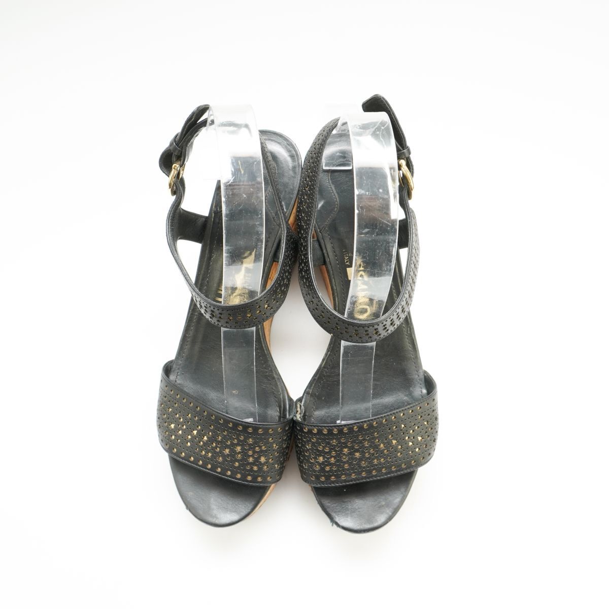 □サイズ:8 D 24.5-25.0相当 ※海外表記の場合 上記に掲載している靴のサイズはあくまで目安です。 靴メーカーによって、また同じメーカーの靴であってもデザインやシリーズなどによりサイズは微妙に違ってきます。あくまで参考程度の目安としてご利用下さい。 ヒールの高さ:8 □素材:レザー □カラー:ブラック □状態 つま先、ストラップ内側に傷あり。画像ご参照ください。 他、特別目立つ汚れ等は見受けられません。 まだまだ使用していただけるお品物です。 ■お取り置きについて お取り置きの対応は行なっておりません。 ご了承くださいませ。 ■落札後のご連絡について ご落札後のご質問・値下げ交渉にはお答えできかねます。 ご質問がありましたら入札前にお願いいたします。 商品落札後は期限内にご入金をお願い致します。 ご入金頂けない場合、 通達連絡をさせて頂きます。それでもご連絡が無い場合は「落札者の都合によるキャンセル」にてお取引を中止とさせて頂きますのでご注意下さい。 ※自動的に「非常に悪い」の評価が付きます。 ■発送について 追跡番号が必要な場合は発送前にご連絡ください。 商品発送後に追跡番号を要求された場合、対応出来かねますのでご了承ください。 また、日時指定の対応は出来かねます。その場合も追跡番号の有無をご連絡くださいますようお願いいたします。 ■商品到着後のお問い合わせについて 記載ミス・抜けがあった場合のみ返金を考慮いたします。必ず 評価前に取引ナビよりご連絡ください。 ※お電話での問い合わせ対応はしておりませんのでご了承ください。 ■評価について 評価が不要の場合はこちらへの評価も入れないようお願い致します。 尚、お問い合わせ前や対応前でのいきなりの悪評価はご遠慮下さい。 不備がありましたら必ず事前にお問い合わせをお願い致します。 いきなりの悪評価の場合、同等評価とさせて頂く場合がございます。 ■商品について 新品商品以外はあくまでUSED品となっております。 着用に問題が無いと判断した商品を出品しておりますが、細かな見落としもございますので、神経質な方、商品のクオリティーをお求めの方は入札をお控え下さい。 検品の際にできる限りの商品ケアをさせて頂いておりますが、素材や繊維のニオイが残る場合がございます。 天気の良い日に風通しの良い場所で2日程度天日干しをお試し下さい。 商品到着後のサイズ変更やカラー変更・他商品への変更等、落札者様の都合での商品交換、返品は一切お受けしておりません。 画像参照を確認をしていただき十分ご検討の上にてご入札下さい。(ただし初期不良は除く) ■画像と実物品のイメージ・色について 掲載している画像は撮影用の商品となりますので お届けする商品によっては柄の配置等が微妙に違う場合がございます。 1枚布・生地を裁断して大量生産する場合、生地をカットした部分が 1着・1着それぞれ異なる為、柄の位置ズレが発生致しますので 掲載画像と実物品のイメージが違う場合がございます。 あらかじめご理解とご了承下さいます様、お願い致します。 当店では室内で撮影をしていますが、夜間や室内の暗い場所・蛍光灯の光で商品を見ると 色やイメージが違って見える場合がございます。 また、スマホやPCモニターの解像度・照度設定等の違いや、ブルーライト軽減の効果により出品画像の色と実物品の色合いが違って見える場合がございます。 実物品を撮影した画像を掲載しておりますので「画像と実物品のイメージが違う」「●●色に見える」等のお問い合わせはお受けしておりませんのでご了承下さい。 ■入札について 新規入札の方や評価の悪い方はトラブル防止の為、 入札をお断りする場合がございます。あらかじめご了承下さい。 ※新規の方・評価の悪い方からの不正な迷惑行為が多いため。