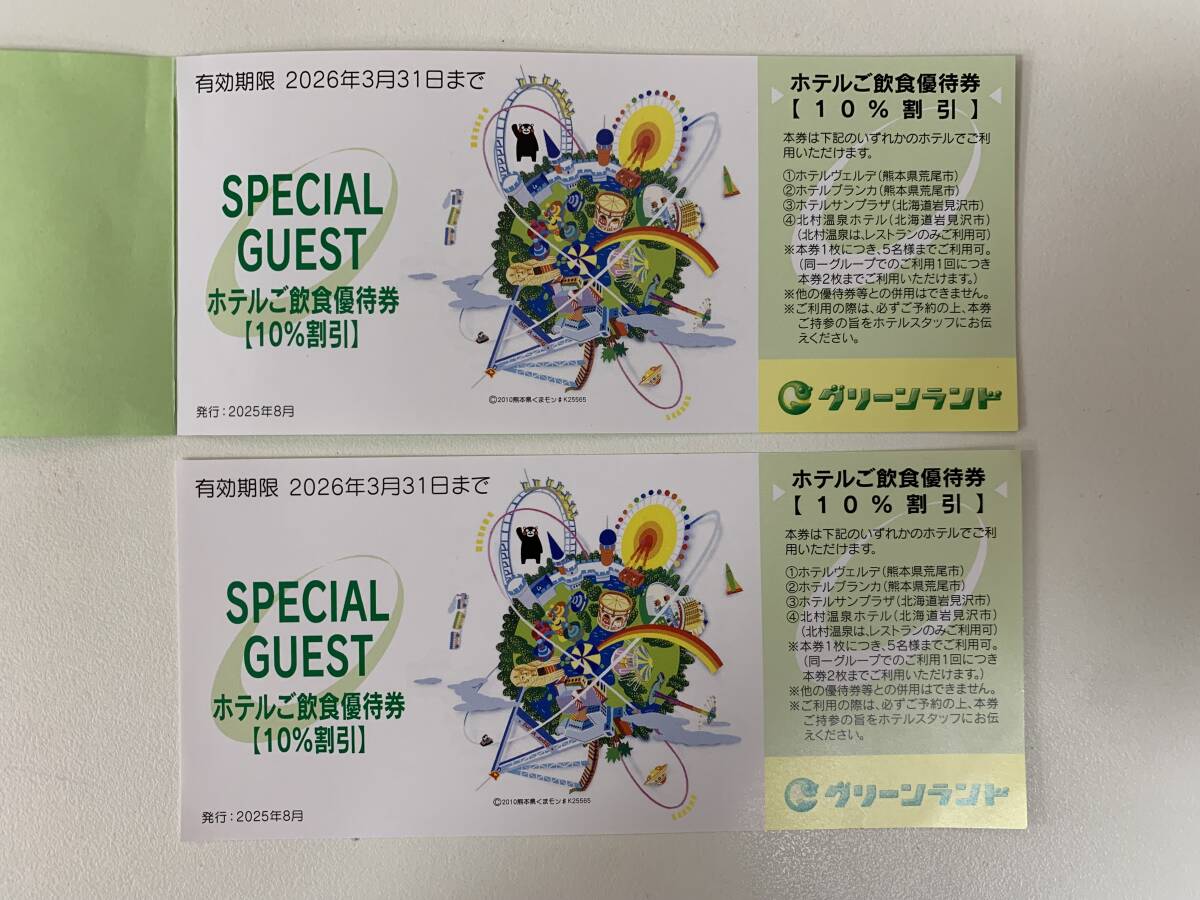 | 商品名 | グリーンランド スペシャルゲスト ホテルご飲食優待券 10%割引 |