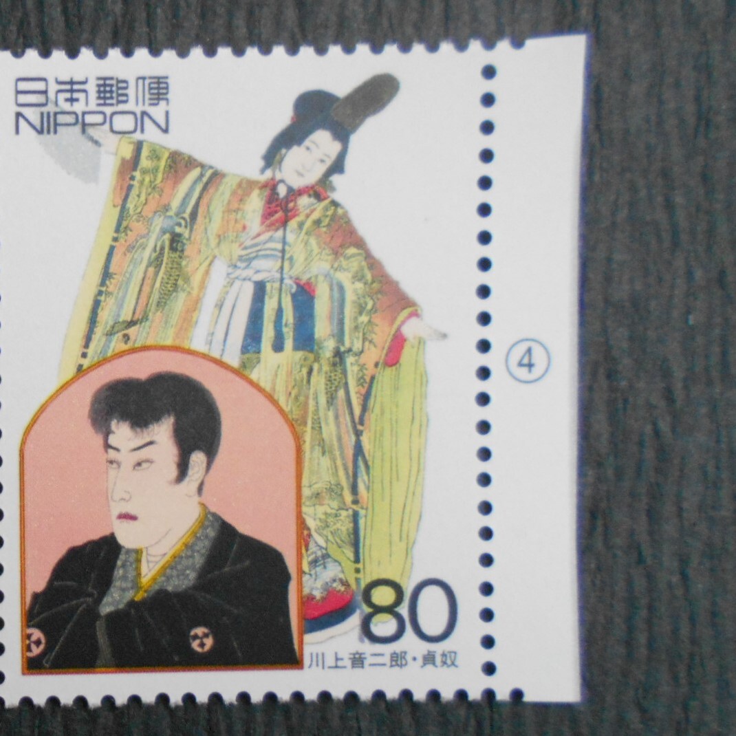 20世紀デザイン切手第1集④ 村上音二郎・貞奴 未使用80円切手