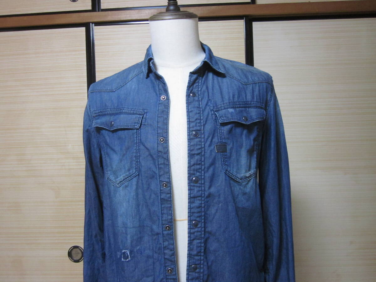 ☆☆☆【 新規出品 】G-STAR RAW ジースターロー:リペアデザイン仕様 デニムシャツ:正規品・サイズ表示M
