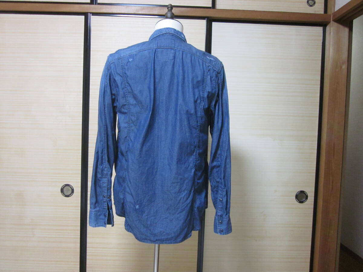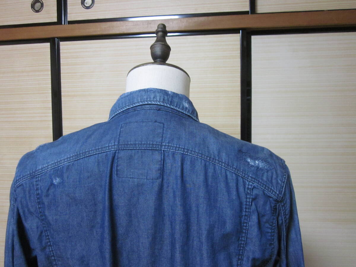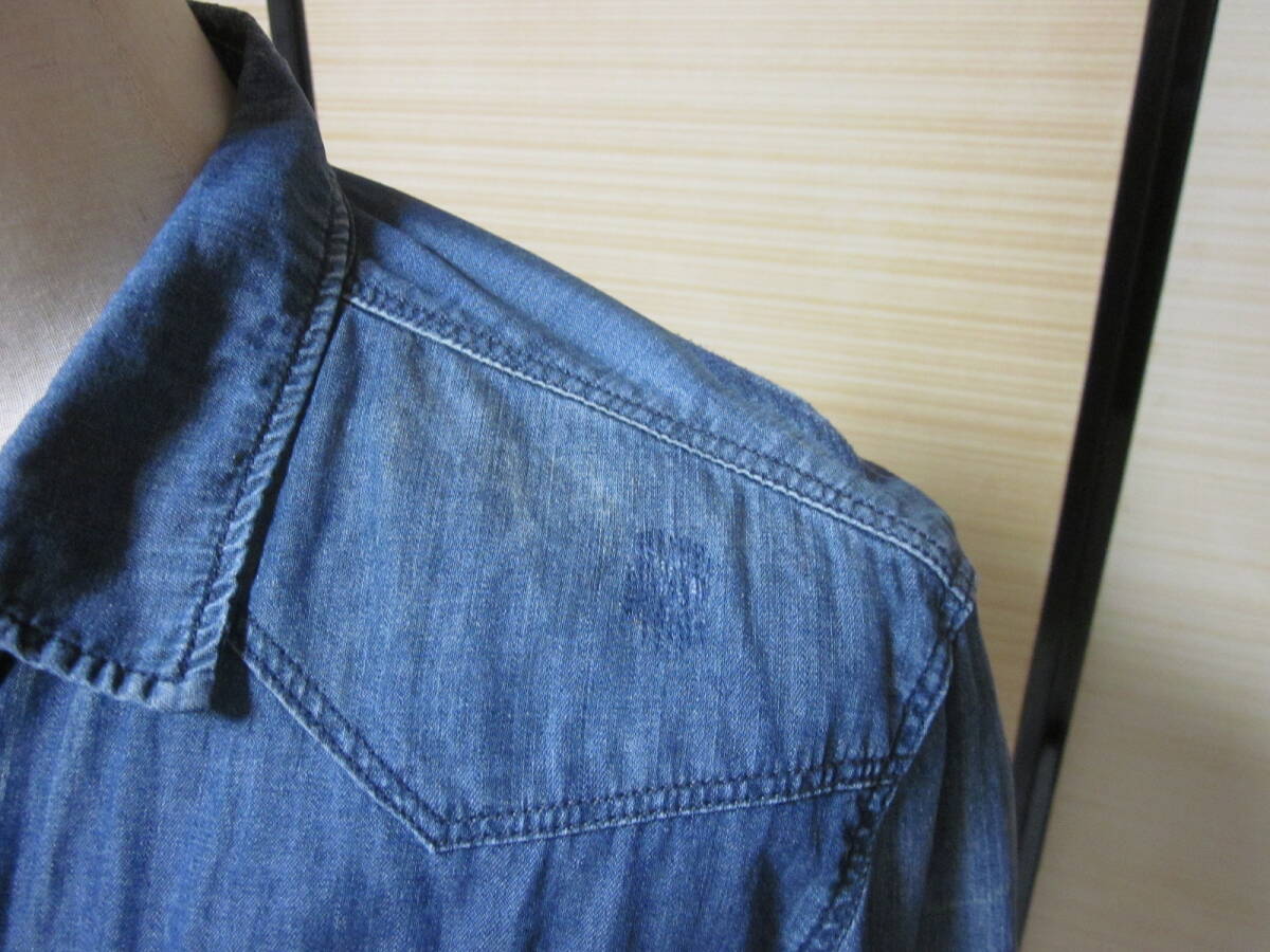 ・たいへん、味わいのあるデニムシャツです。ノーマルなデニムシャツには無いデザイン性も高く感じます。同ブランドのデニムとのコーデなどがベストに感じます。