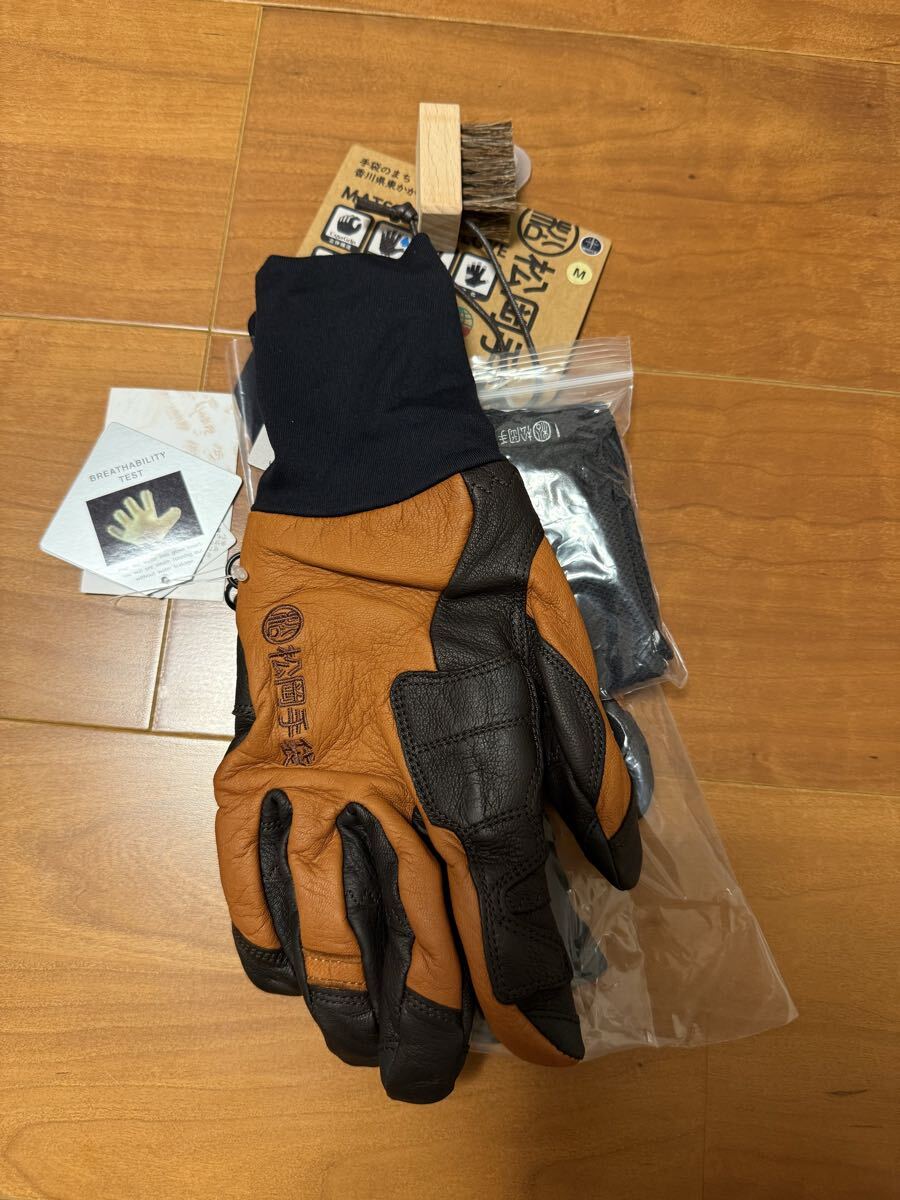 ・人差し指下の松岡手袋のロゴを直縫いに変更 ・頻繁な着脱に便利なロングリブを採用。二つ折りでショートリブにも ・ちょっとしたお手入れに大活躍のミニブラシを標準装備 ・カラビナループ活用で乾燥時や移動時にも◎ ・手首の引手で奥までフィット