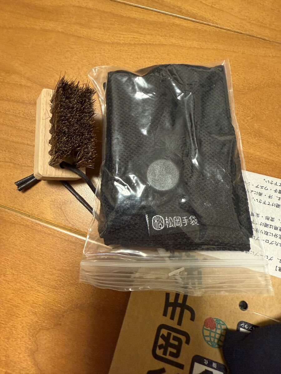 おまけで使いかけでラベルが破れていますが松岡手袋のメンテナンスオイルをお付けします。別のグローブで少し使用しましたが今回、出品しているグローブはまだオイルは塗っていません。