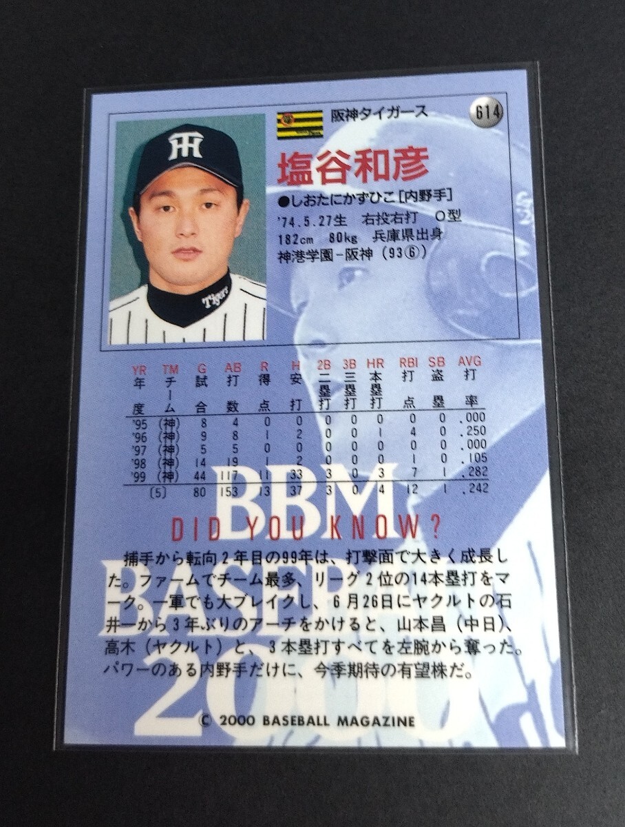 2000年BBM 塩谷和彦(阪神)No,614。ハイナンバー。※表面、小さなダメージあり(画像3)