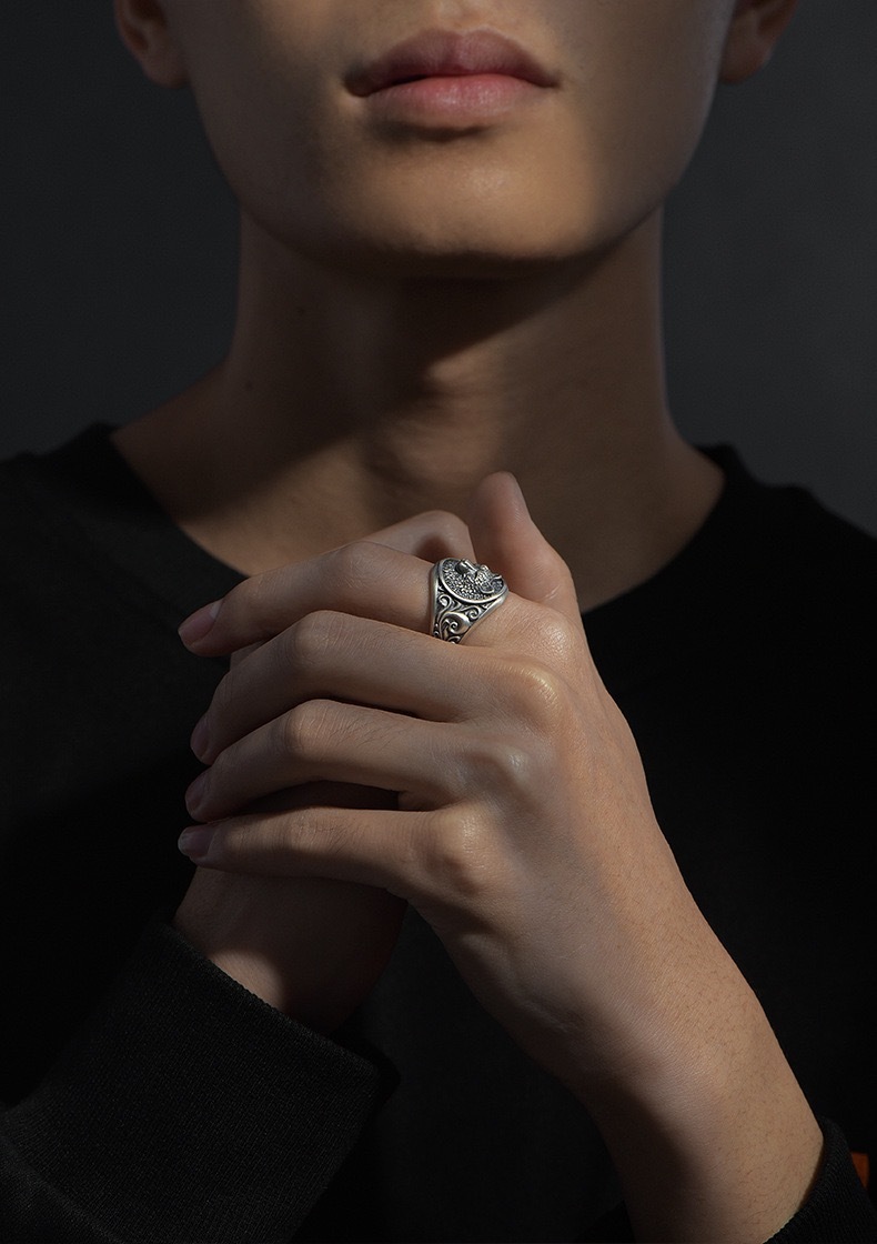 大人の男性にもピッタリのさりげなく男らしさを与えてくれる魅力的なメンズ指輪です。独特なデザインで存在感があるファッション性の高いおしゃれなでかっこいい大人気 指輪(ゆびわ、戒指)です。大きいサイズ(おおきいサイズ)にも対応しております。