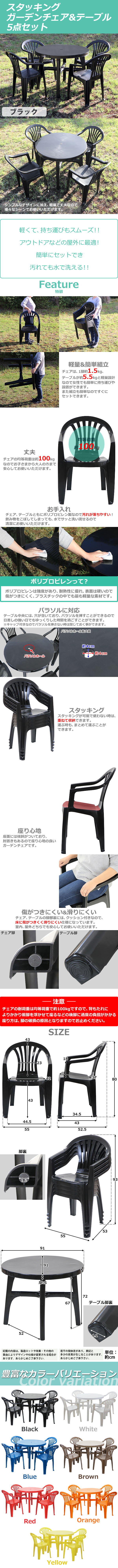 | 商品名 | 送料無料 ガーデンチェア ガーデンテーブル 5点セット ガーデンセット ポリプロピレン製 PP ブラック ガーデンテーブル&チェアー4脚 軽量で持ち運び簡単 ガーデンファニチャー ガーデン テーブル セット ガーデンテーブルセット アウトドア プラスチック 黒 dchairb20tablebk |